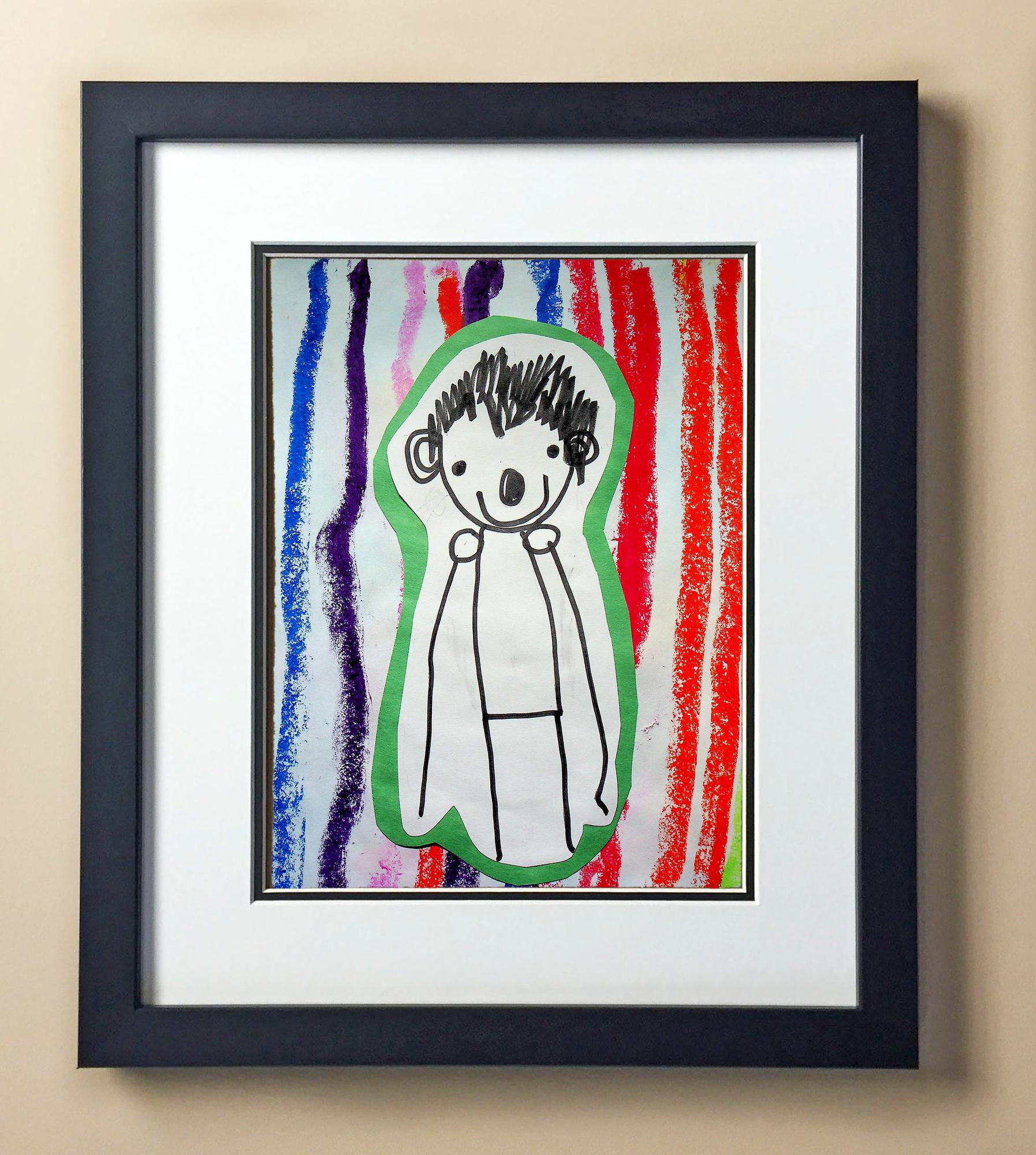 Included with the purchase is the Students Artwork, Frame, double matboard, shatter proof plexiglass, and a ready to hang backerboard with turnbuttons
