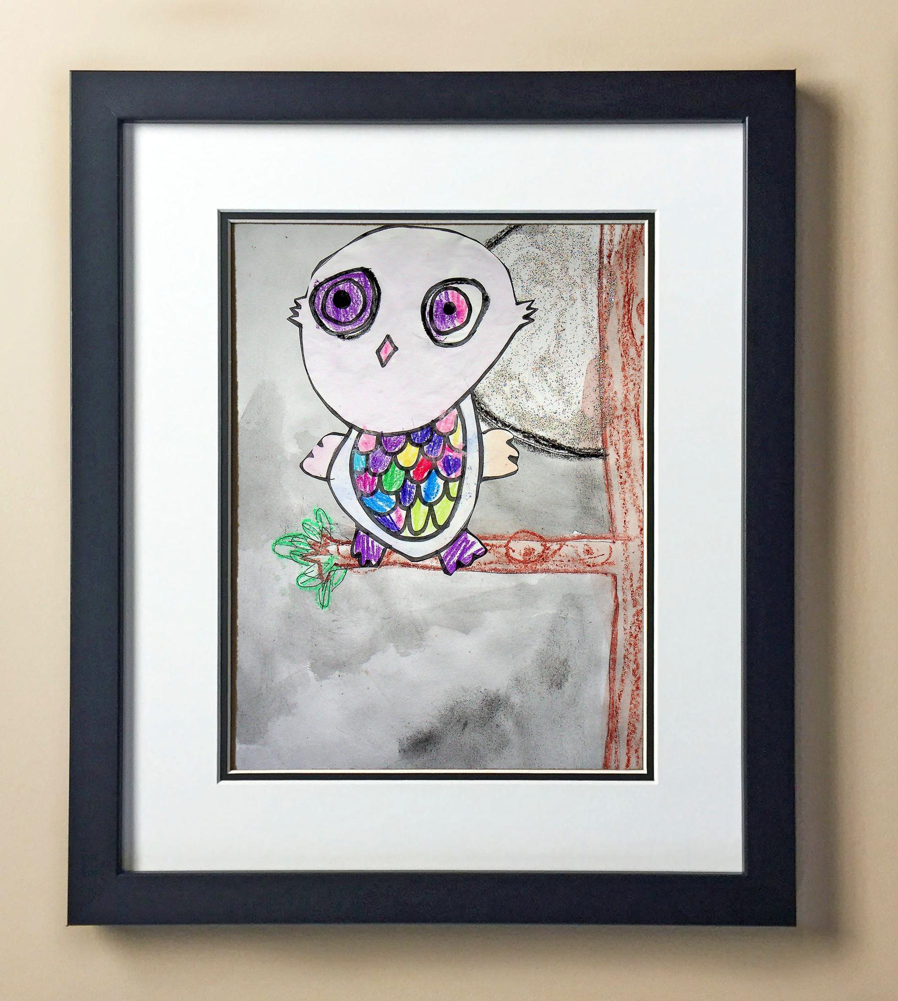 Included with the purchase is the Students Artwork, Frame, double matboard, shatter proof plexiglass, and a ready to hang backerboard with turnbuttons