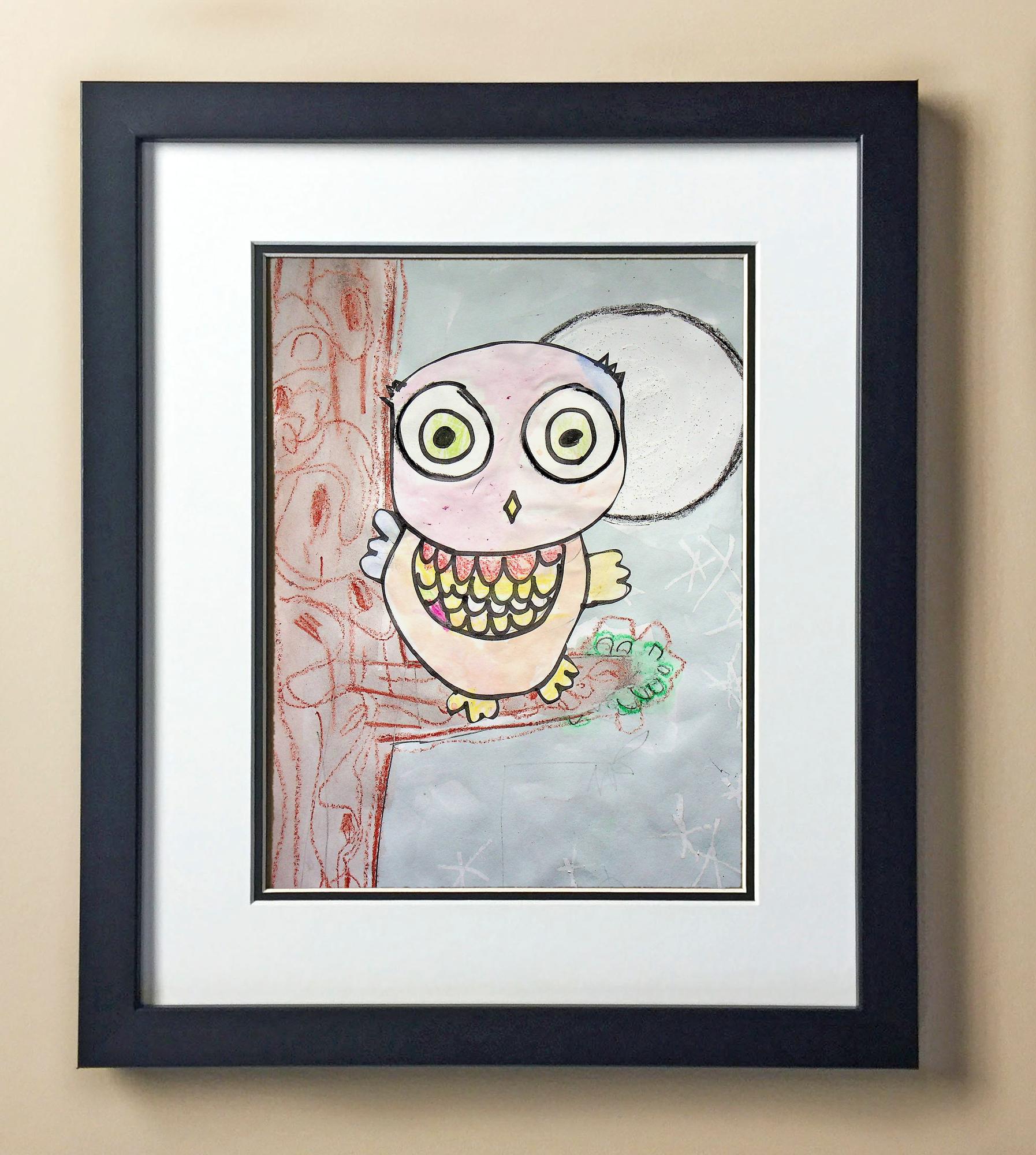 Included with the purchase is the Students Artwork, Frame, double matboard, shatter proof plexiglass, and a ready to hang backerboard with turnbuttons