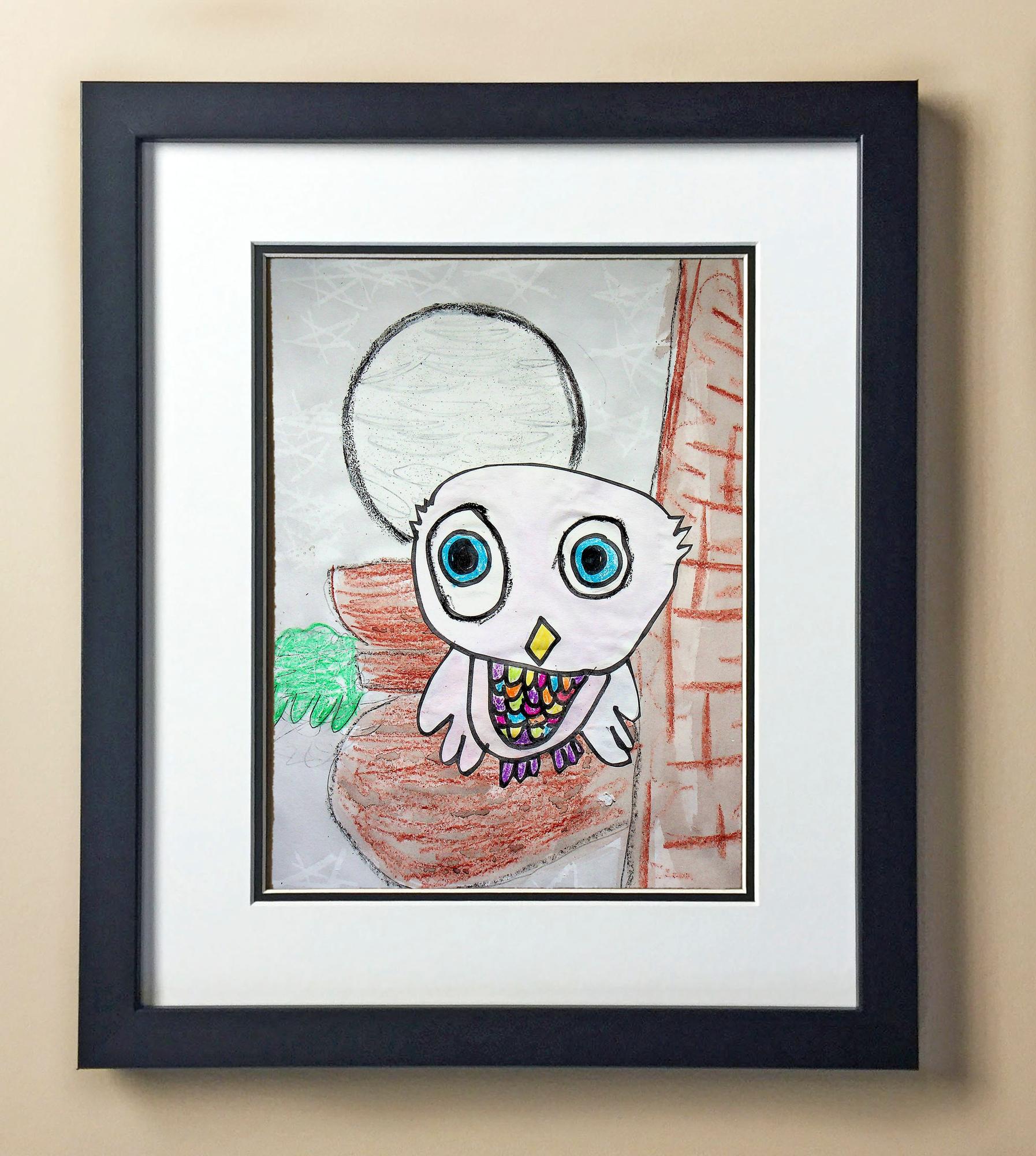 Included with the purchase is the Students Artwork, Frame, double matboard, shatter proof plexiglass, and a ready to hang backerboard with turnbuttons