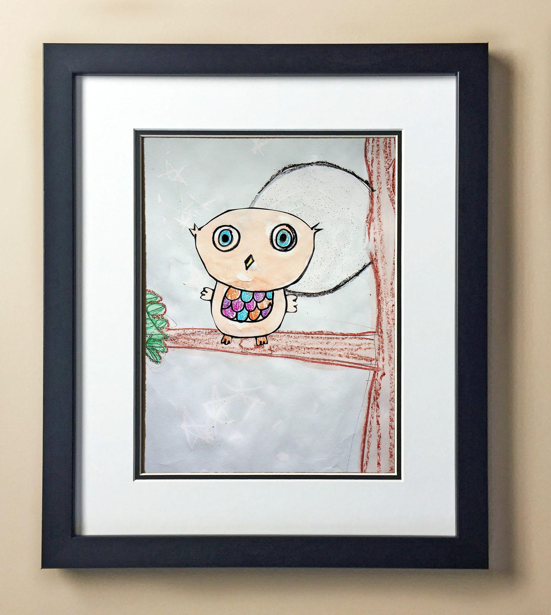 Included with the purchase is the Students Artwork, Frame, double matboard, shatter proof plexiglass, and a ready to hang backerboard with turnbuttons