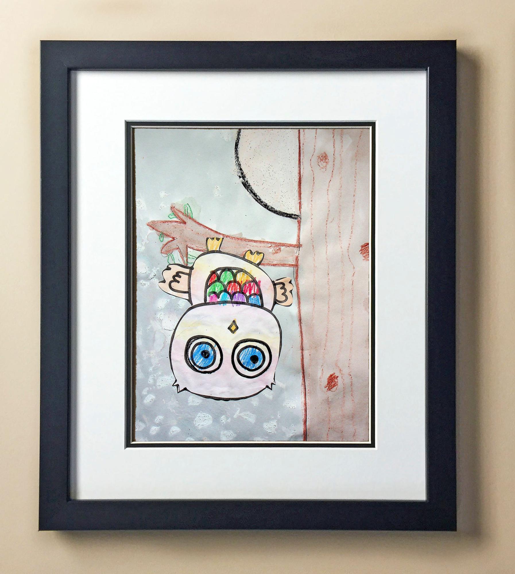 Included with the purchase is the Students Artwork, Frame, double matboard, shatter proof plexiglass, and a ready to hang backerboard with turnbuttons