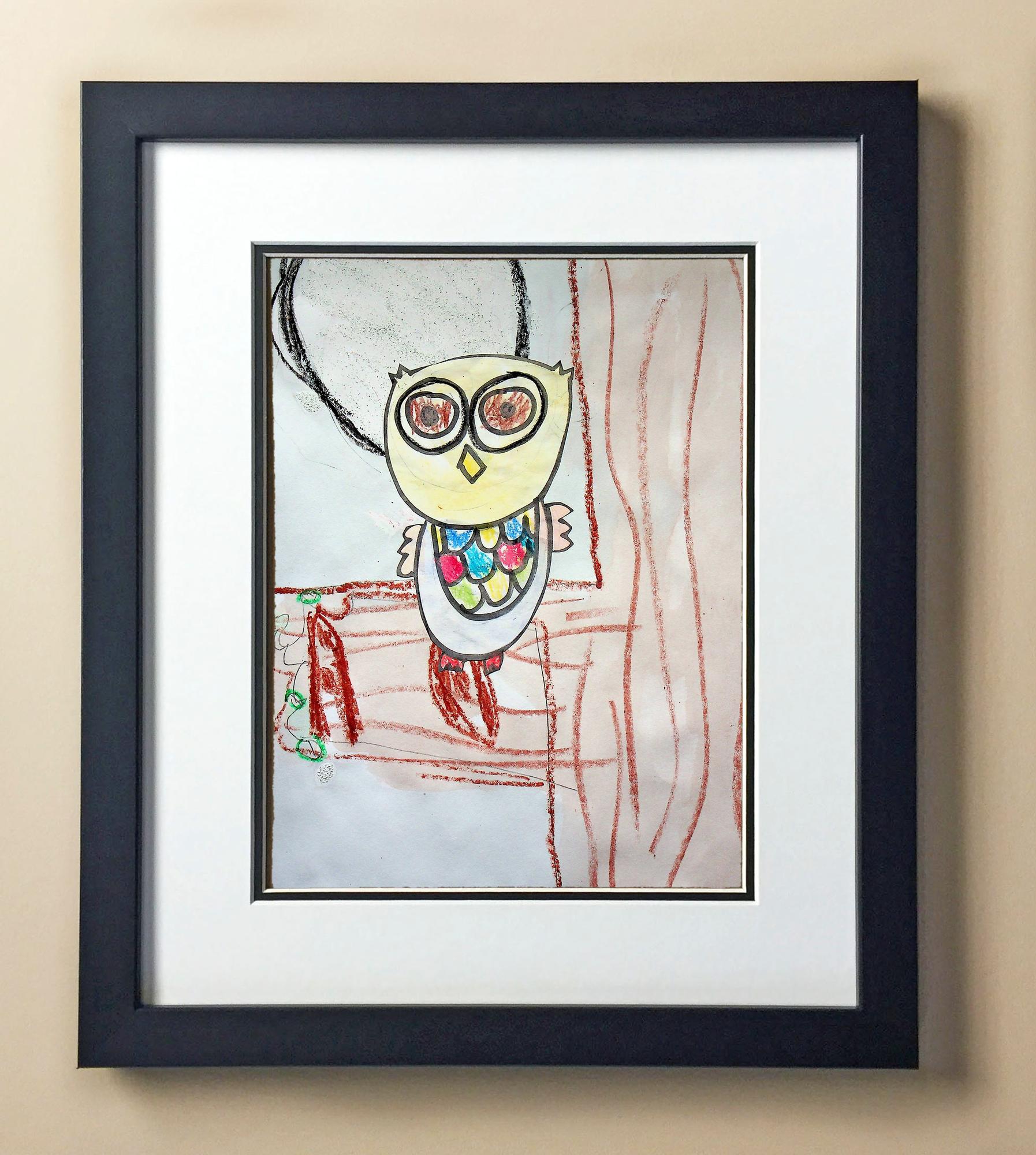 Included with the purchase is the Students Artwork, Frame, double matboard, shatter proof plexiglass, and a ready to hang backerboard with turnbuttons