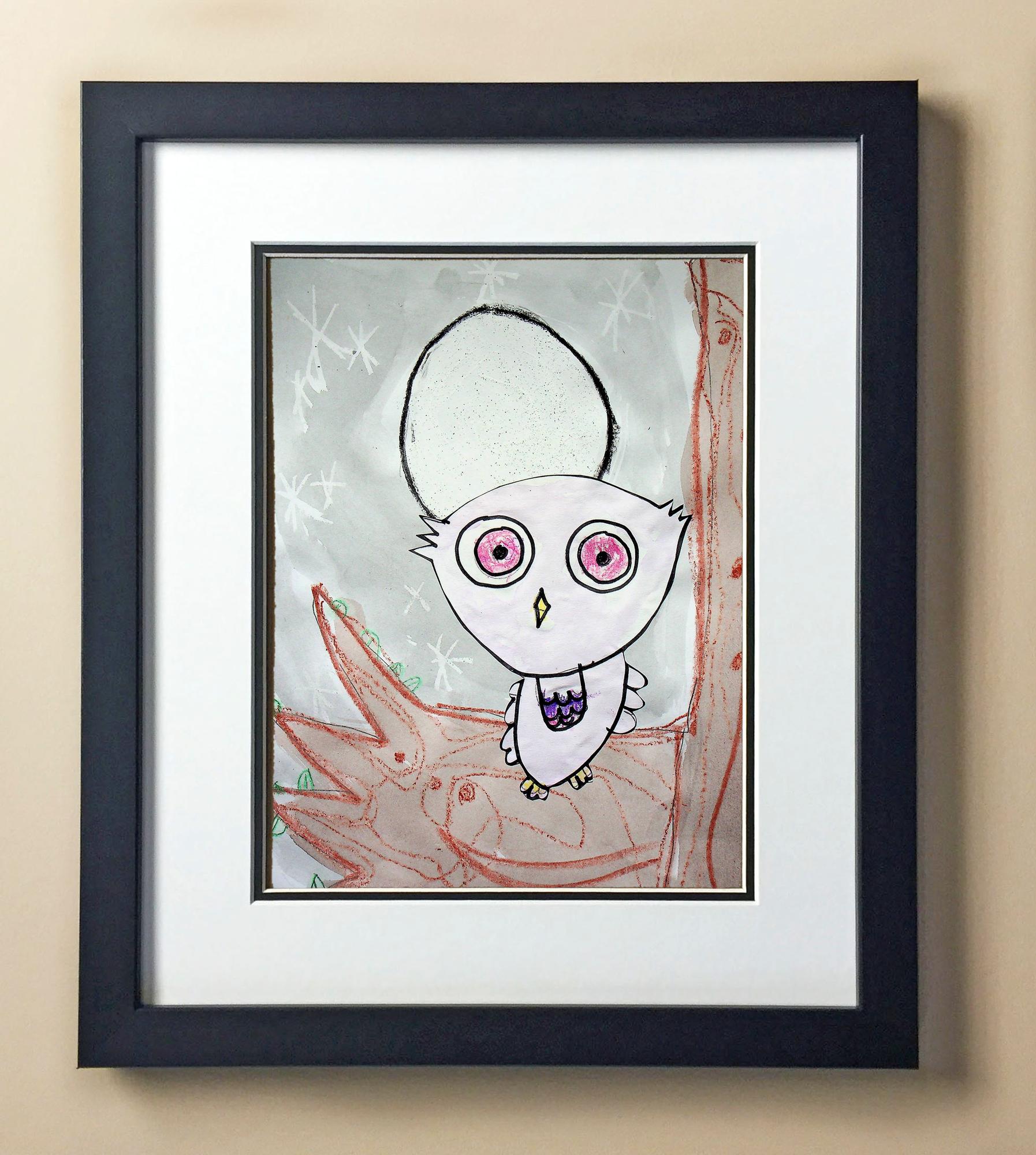 Included with the purchase is the Students Artwork, Frame, double matboard, shatter proof plexiglass, and a ready to hang backerboard with turnbuttons