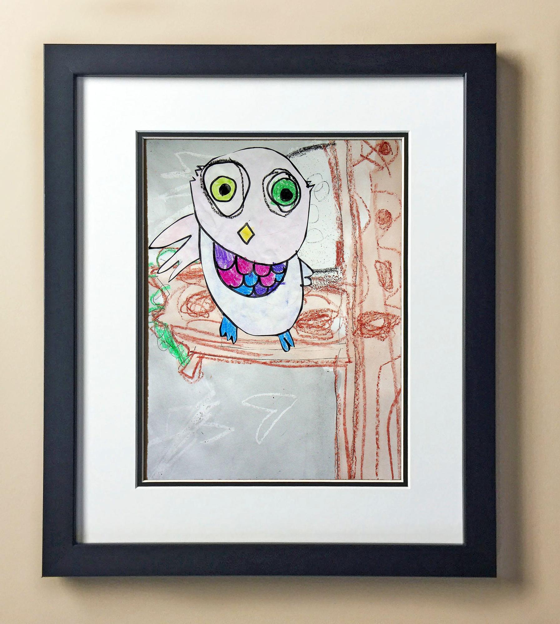 Included with the purchase is the Students Artwork, Frame, double matboard, shatter proof plexiglass, and a ready to hang backerboard with turnbuttons