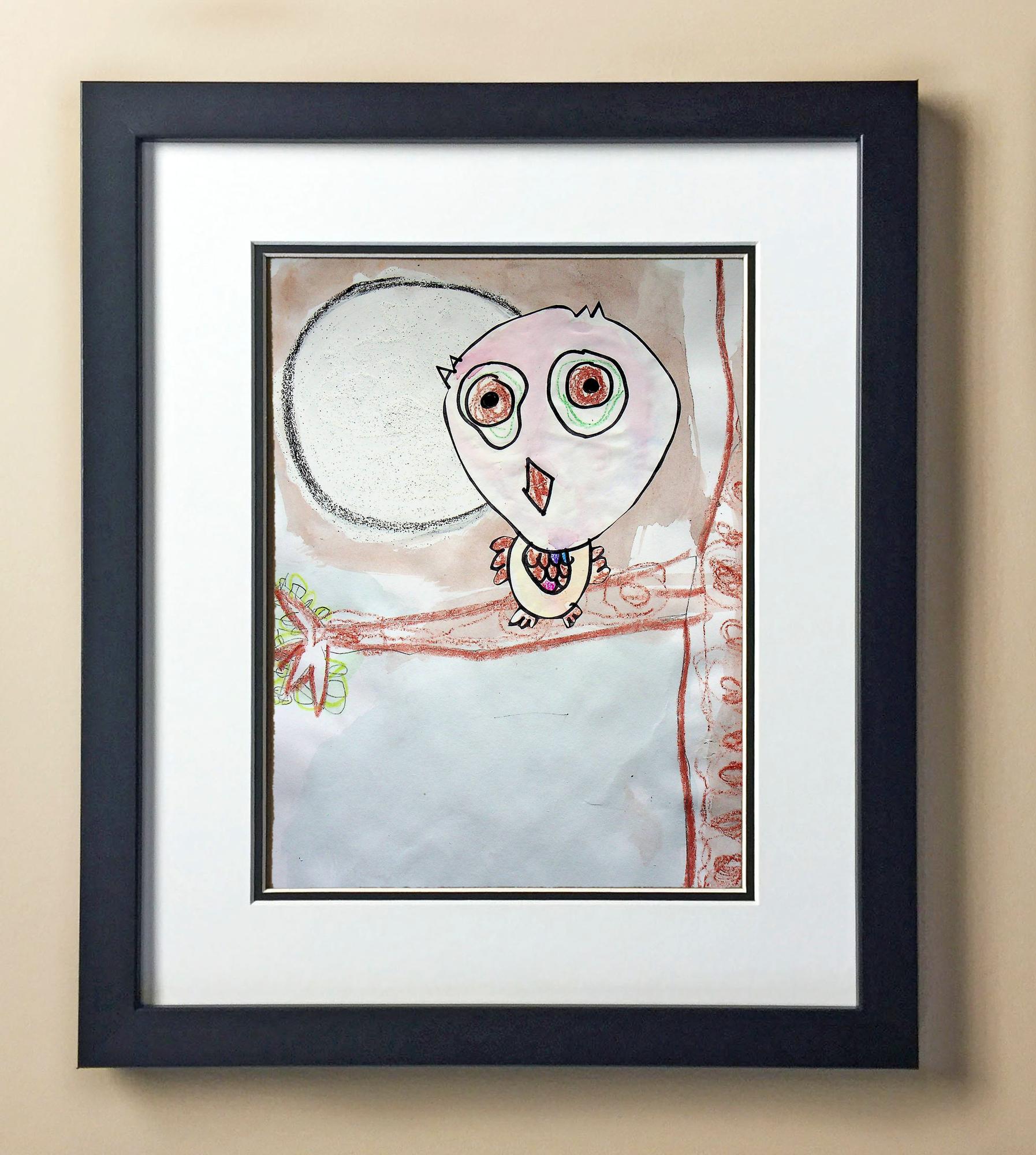 Included with the purchase is the Students Artwork, Frame, double matboard, shatter proof plexiglass, and a ready to hang backerboard with turnbuttons
