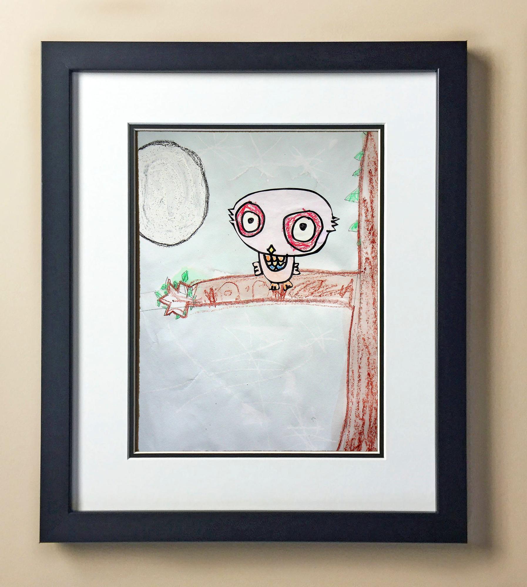 Included with the purchase is the Students Artwork, Frame, double matboard, shatter proof plexiglass, and a ready to hang backerboard with turnbuttons