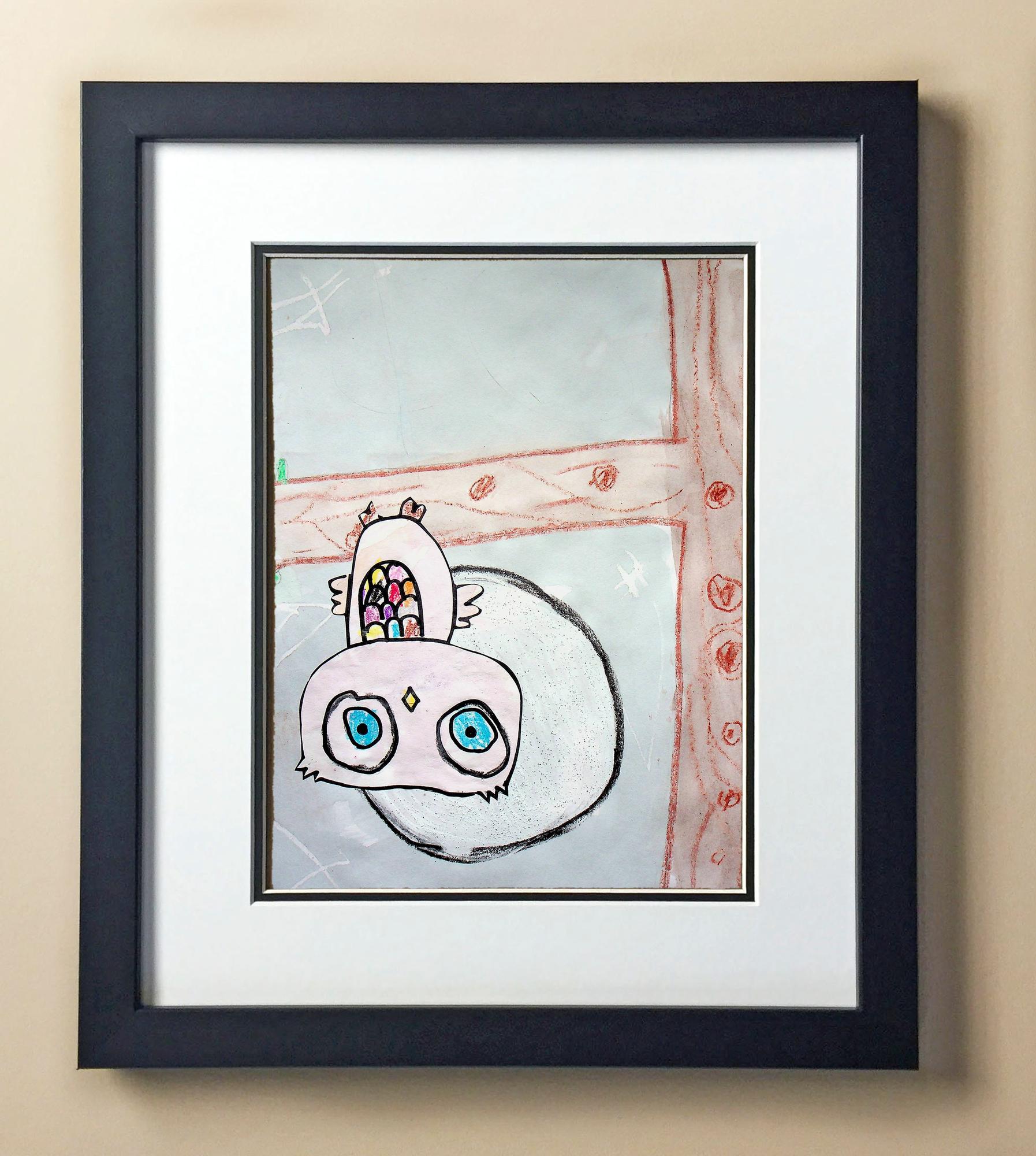 Included with the purchase is the Students Artwork, Frame, double matboard, shatter proof plexiglass, and a ready to hang backerboard with turnbuttons