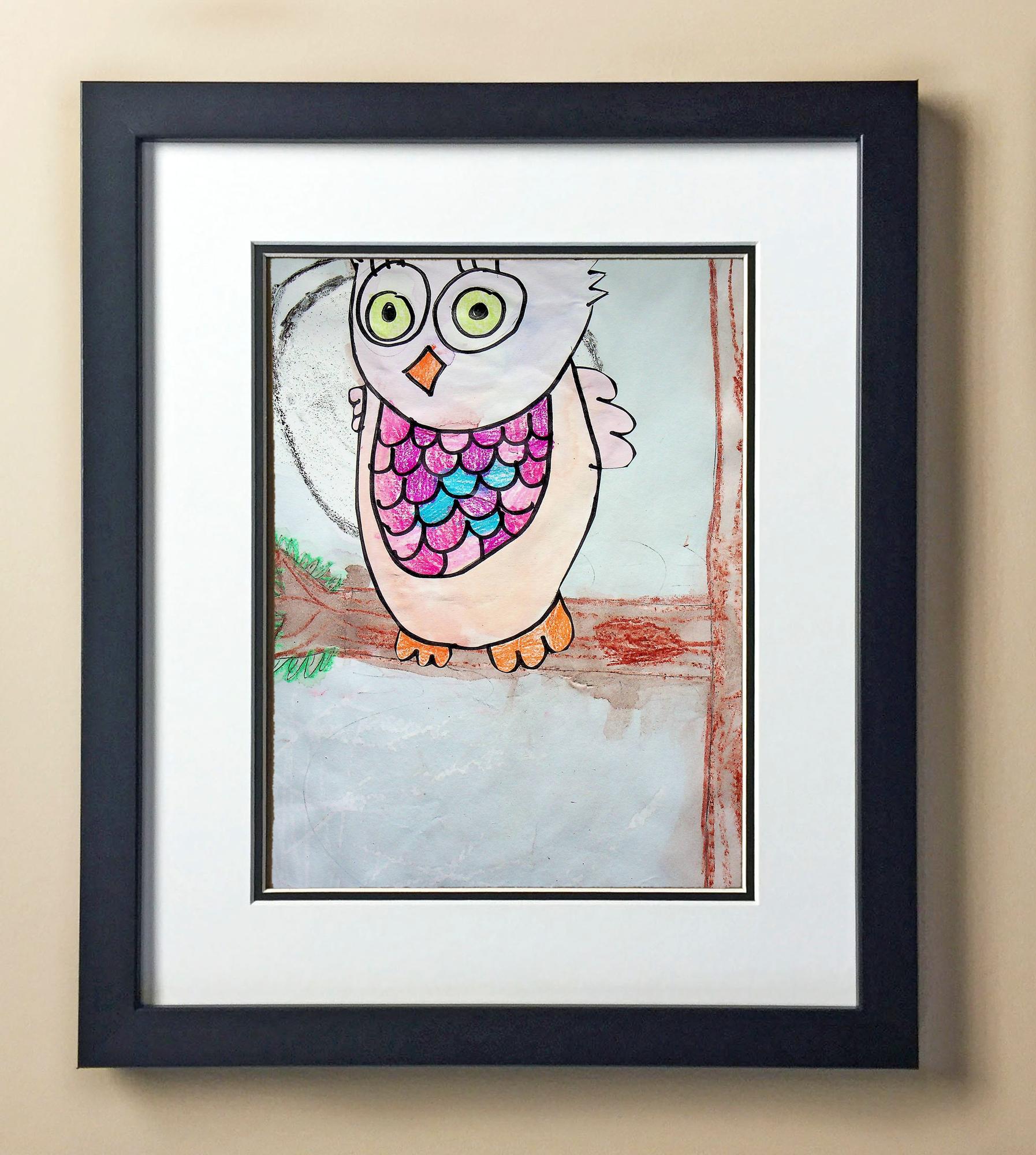 Included with the purchase is the Students Artwork, Frame, double matboard, shatter proof plexiglass, and a ready to hang backerboard with turnbuttons