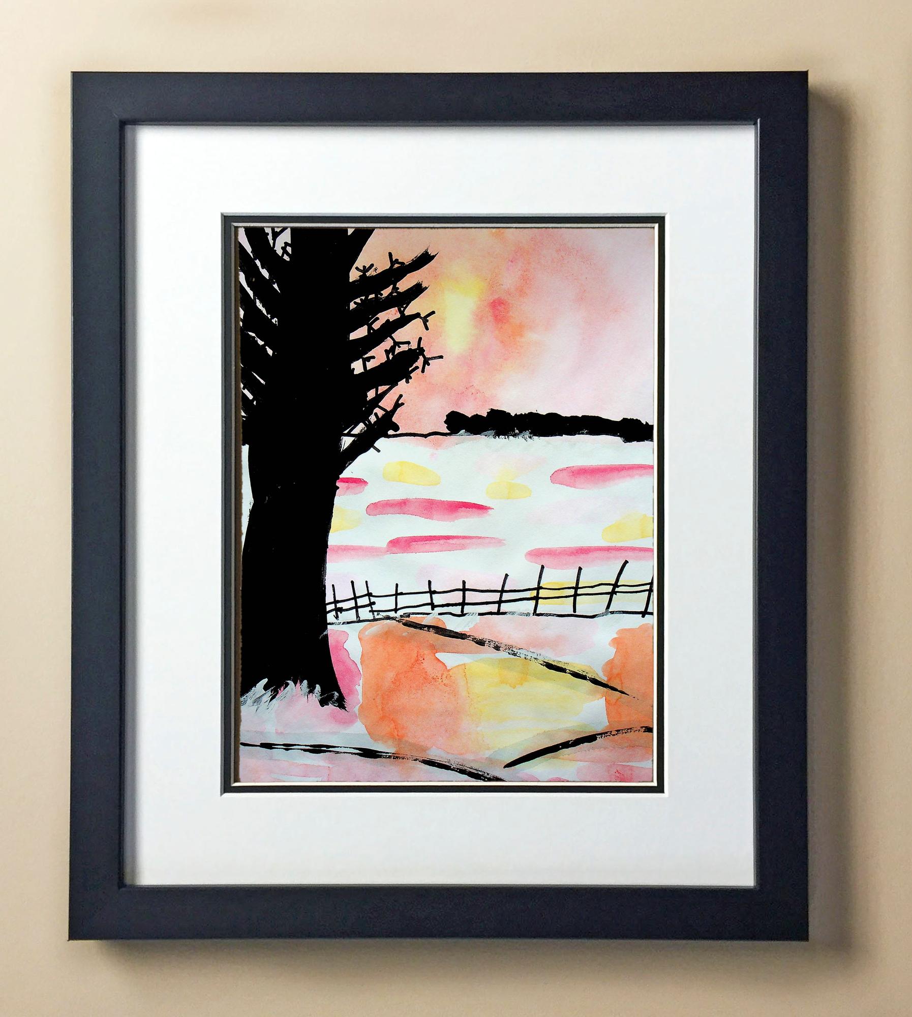 Included with the purchase is the Students Artwork, Frame, double matboard, shatter proof plexiglass, and a ready to hang backerboard with turnbuttons
