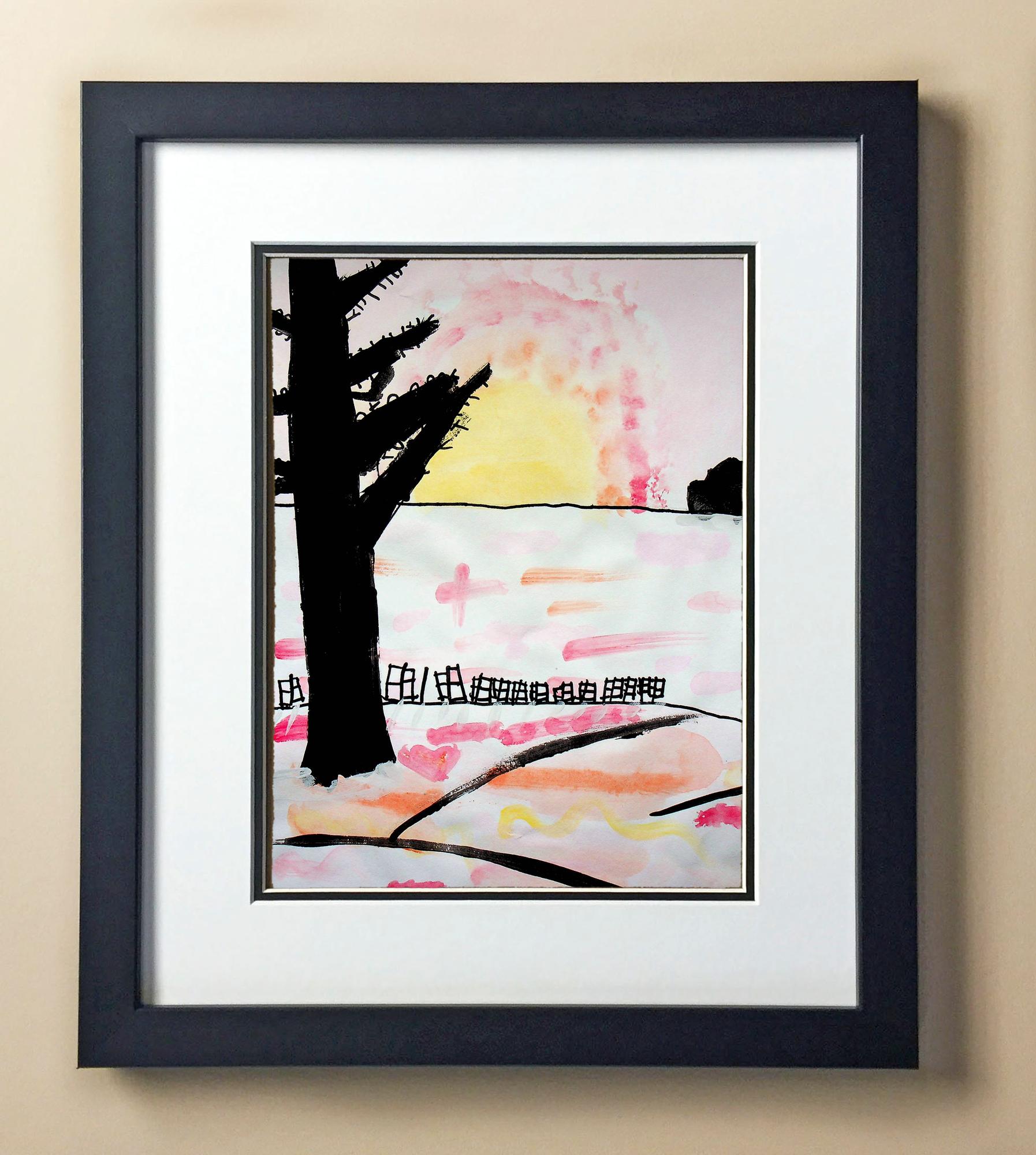Included with the purchase is the Students Artwork, Frame, double matboard, shatter proof plexiglass, and a ready to hang backerboard with turnbuttons