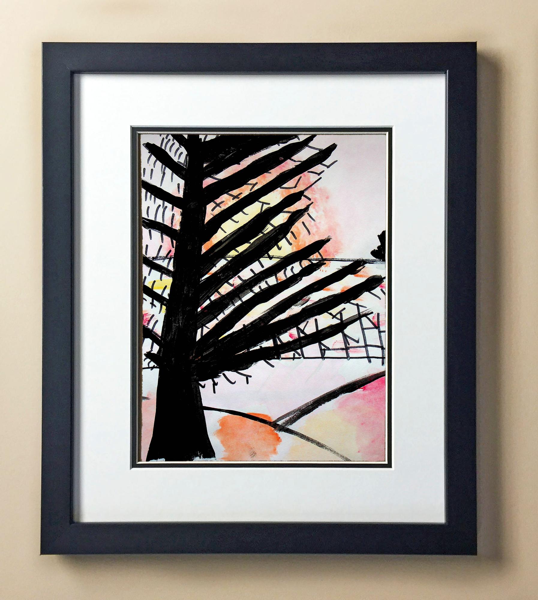 Included with the purchase is the Students Artwork, Frame, double matboard, shatter proof plexiglass, and a ready to hang backerboard with turnbuttons