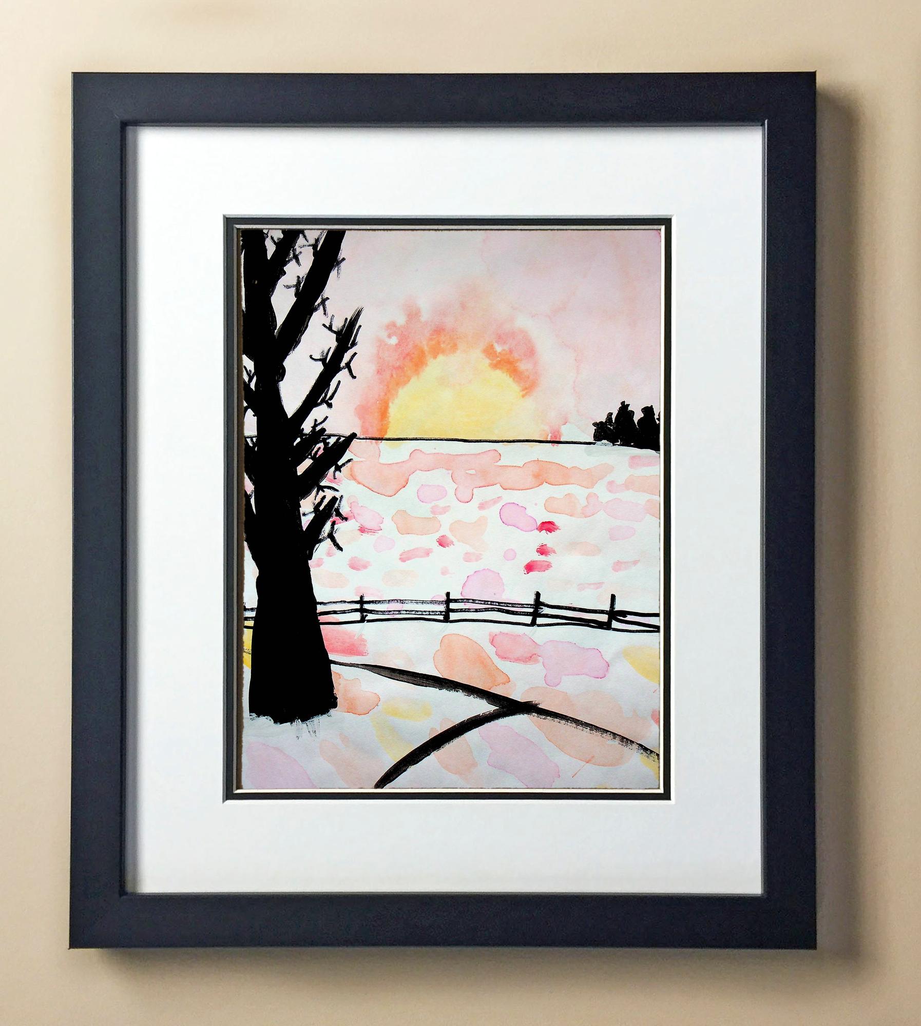 Included with the purchase is the Students Artwork, Frame, double matboard, shatter proof plexiglass, and a ready to hang backerboard with turnbuttons