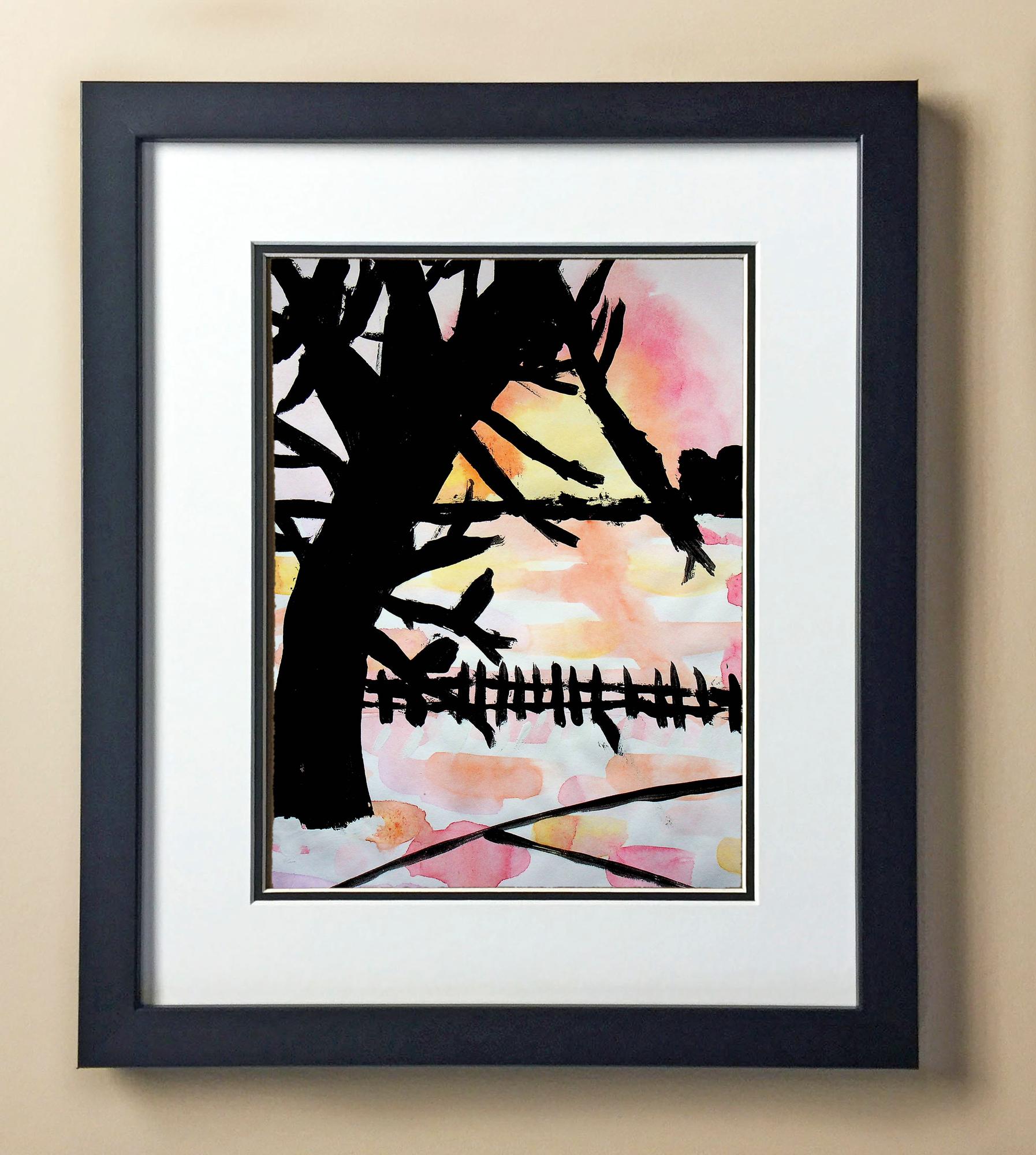 Included with the purchase is the Students Artwork, Frame, double matboard, shatter proof plexiglass, and a ready to hang backerboard with turnbuttons