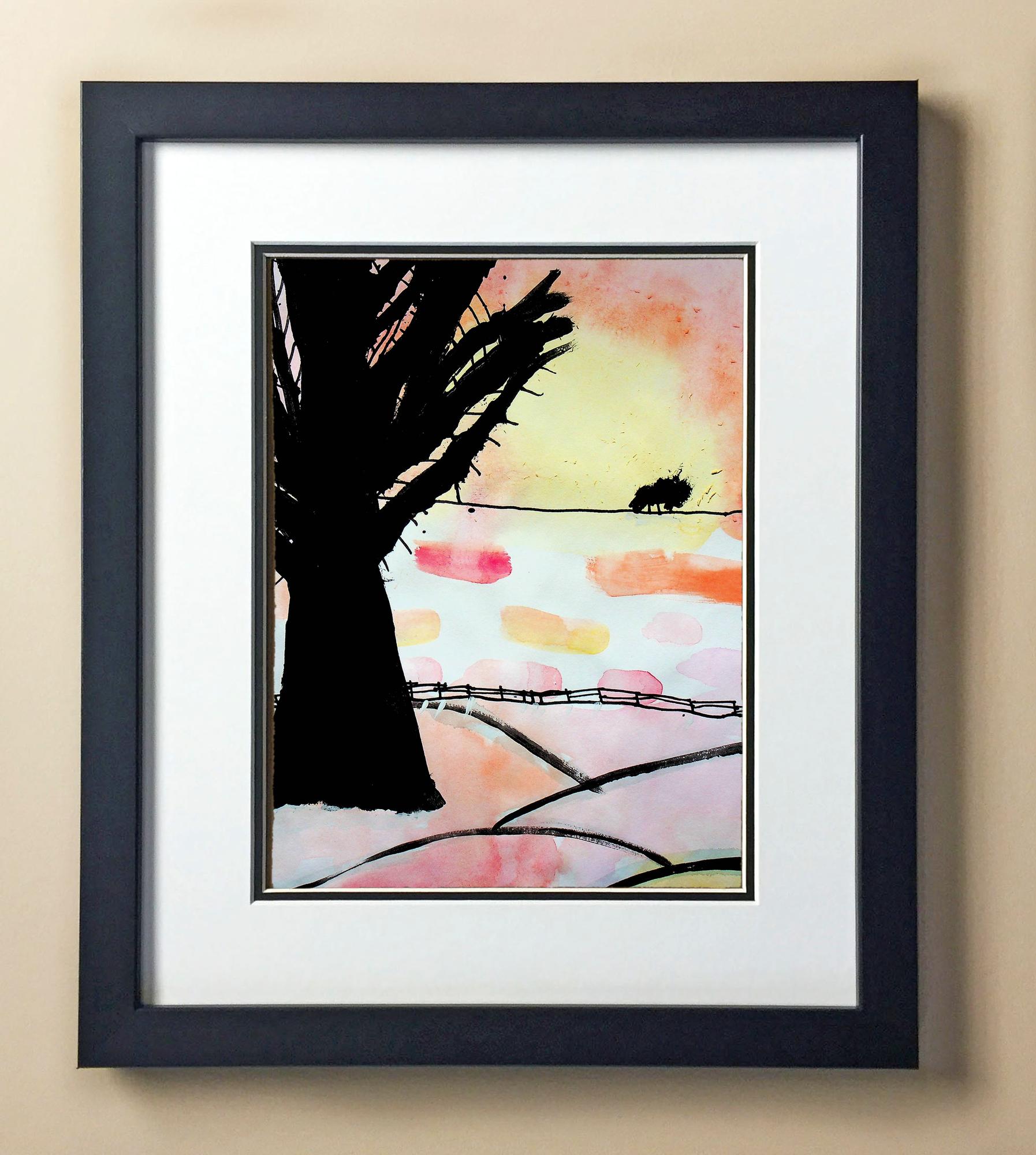 Included with the purchase is the Students Artwork, Frame, double matboard, shatter proof plexiglass, and a ready to hang backerboard with turnbuttons