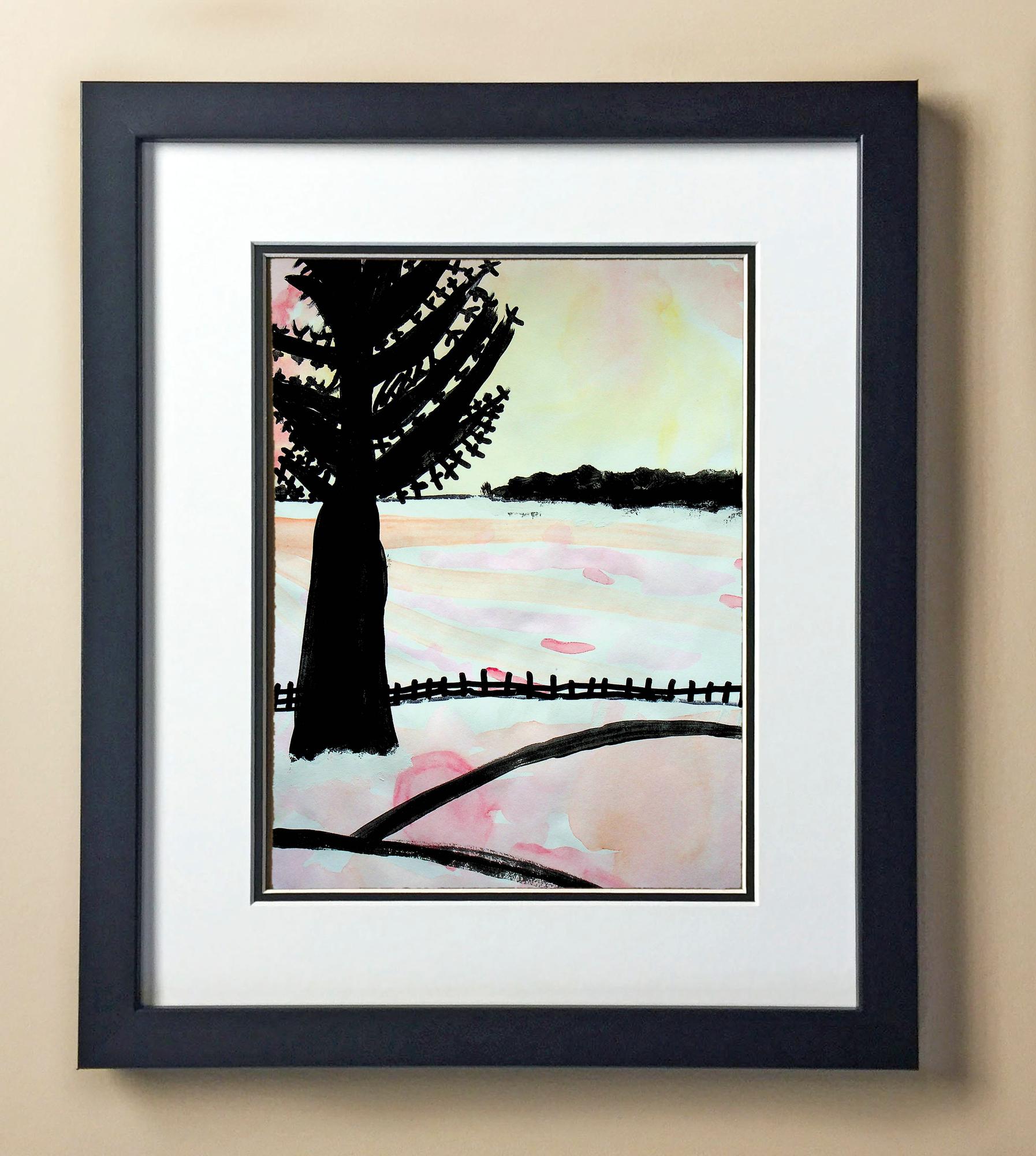 Included with the purchase is the Students Artwork, Frame, double matboard, shatter proof plexiglass, and a ready to hang backerboard with turnbuttons