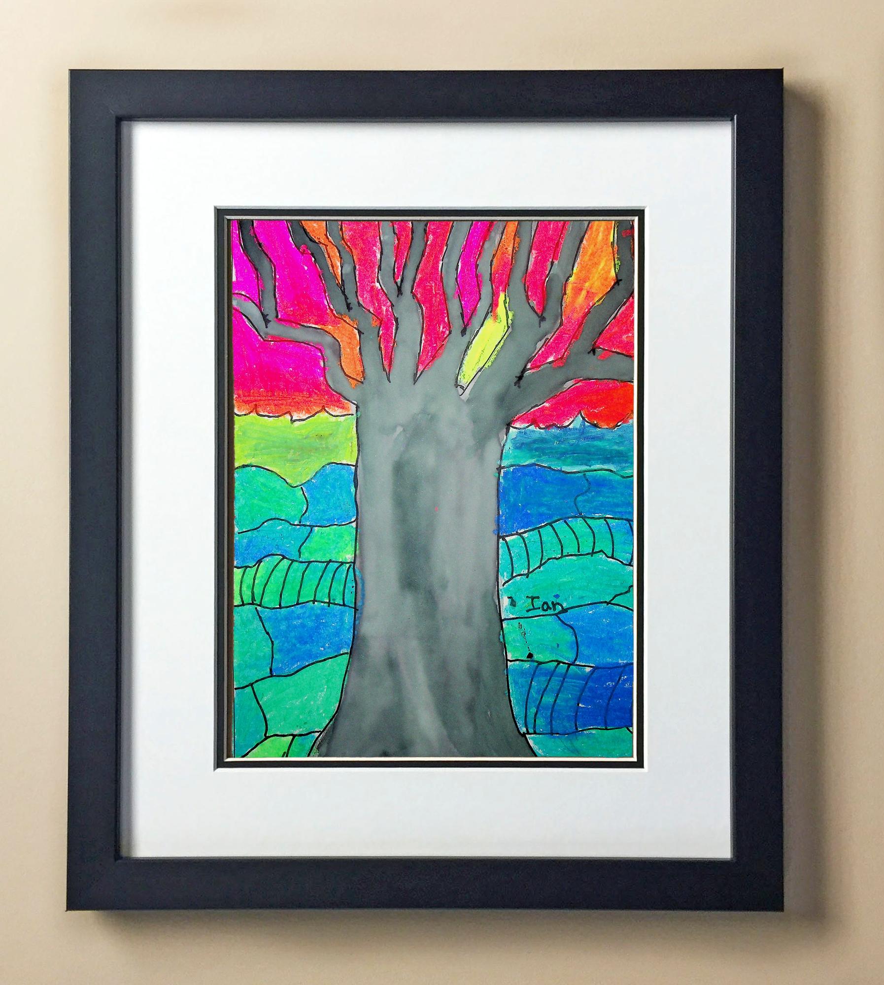 Included with the purchase is the Students Artwork, Frame, double matboard, shatter proof plexiglass, and a ready to hang backerboard with turnbuttons