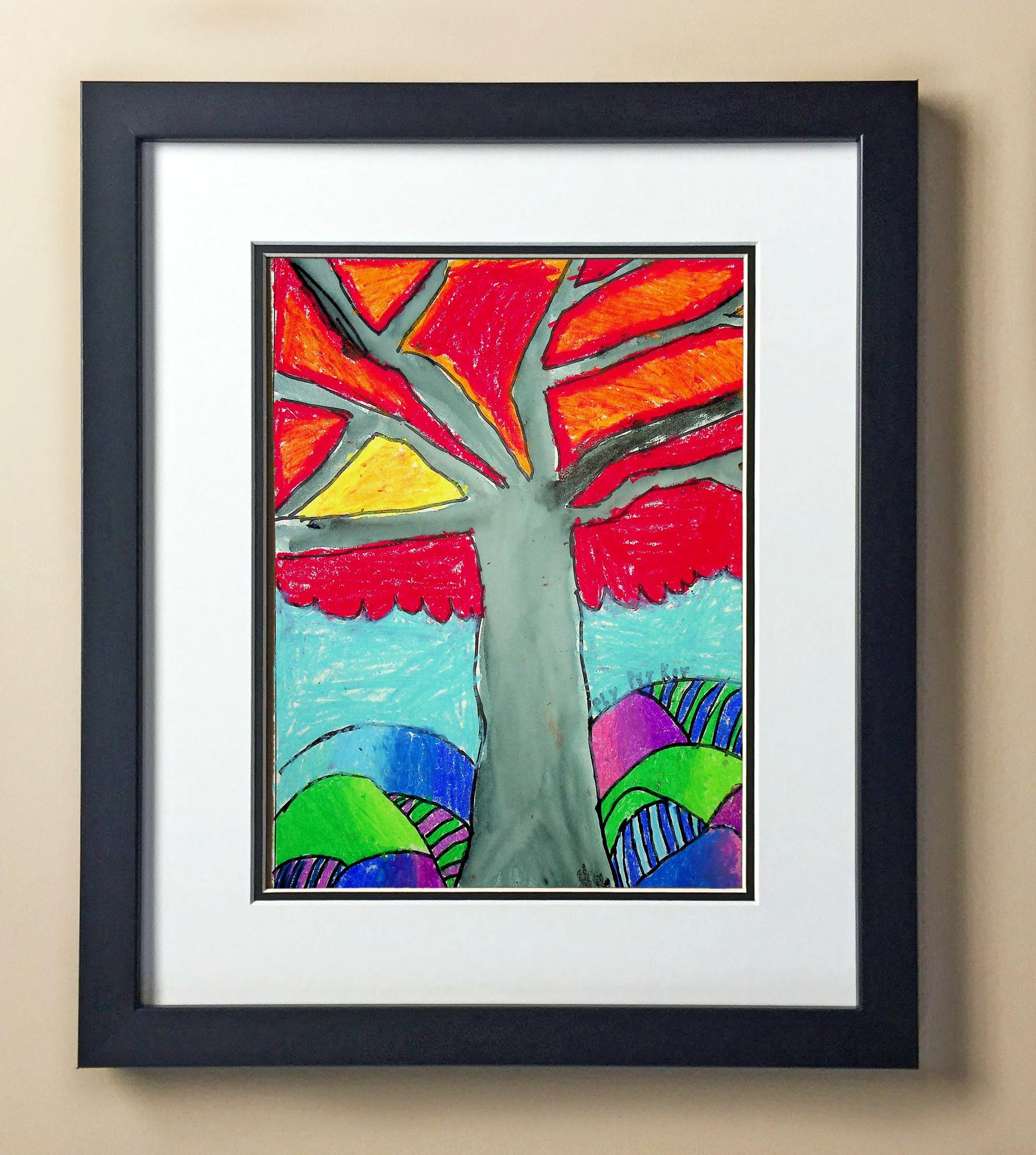 Included with the purchase is the Students Artwork, Frame, double matboard, shatter proof plexiglass, and a ready to hang backerboard with turnbuttons