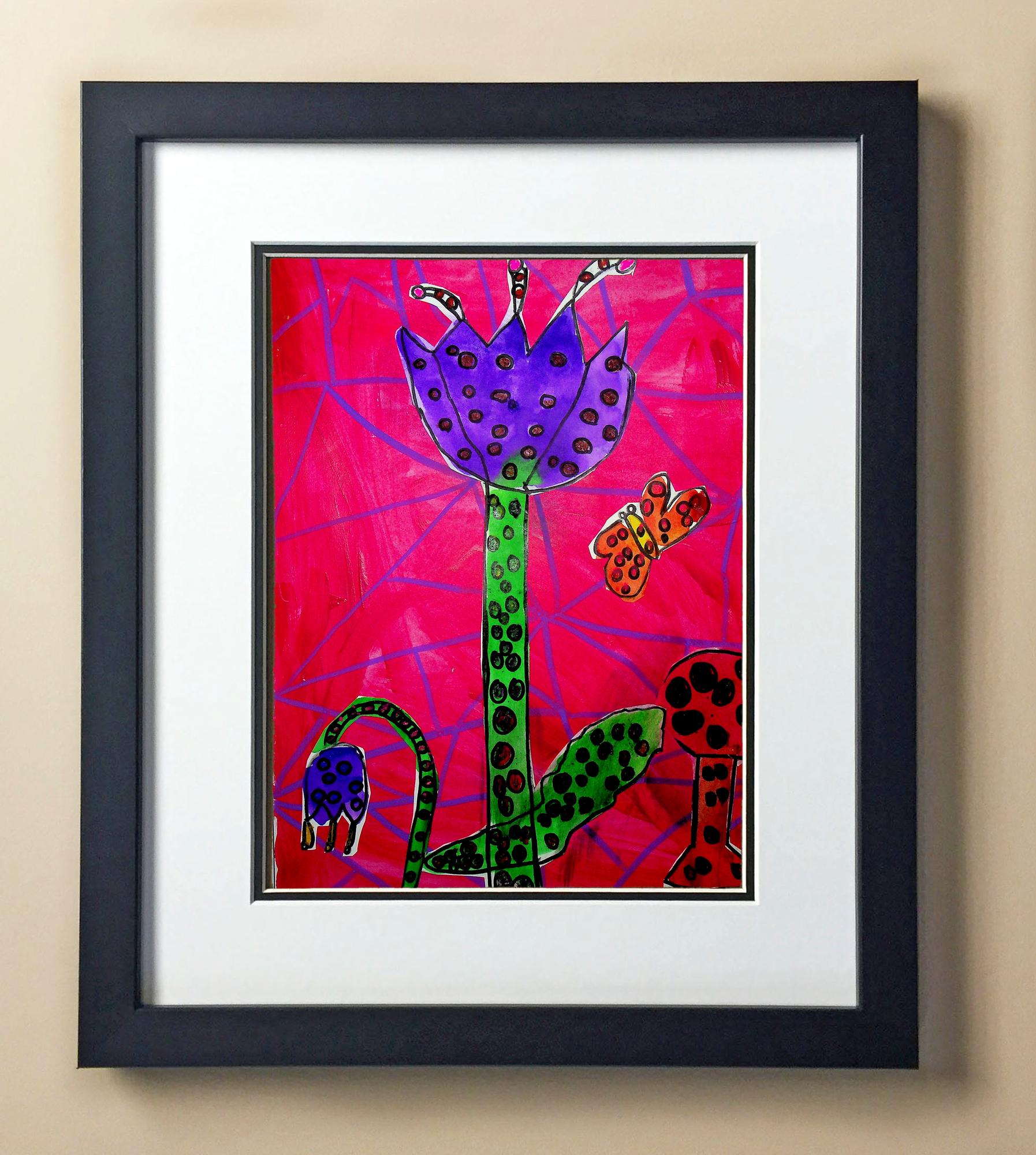 Included with the purchase is the Students Artwork, Frame, double matboard, shatter proof plexiglass, and a ready to hang backerboard with turnbuttons