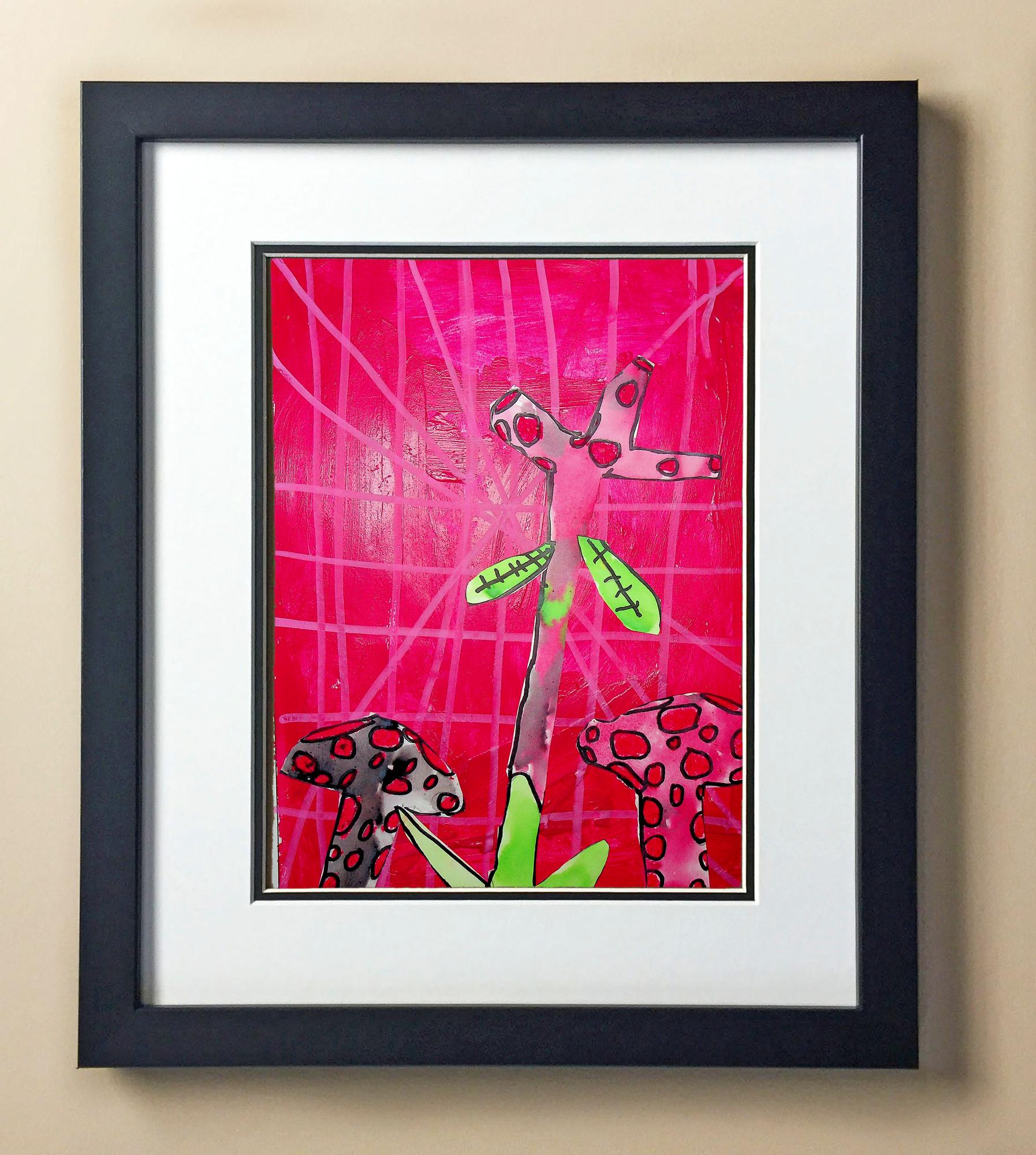 Included with the purchase is the Students Artwork, Frame, double matboard, shatter proof plexiglass, and a ready to hang backerboard with turnbuttons