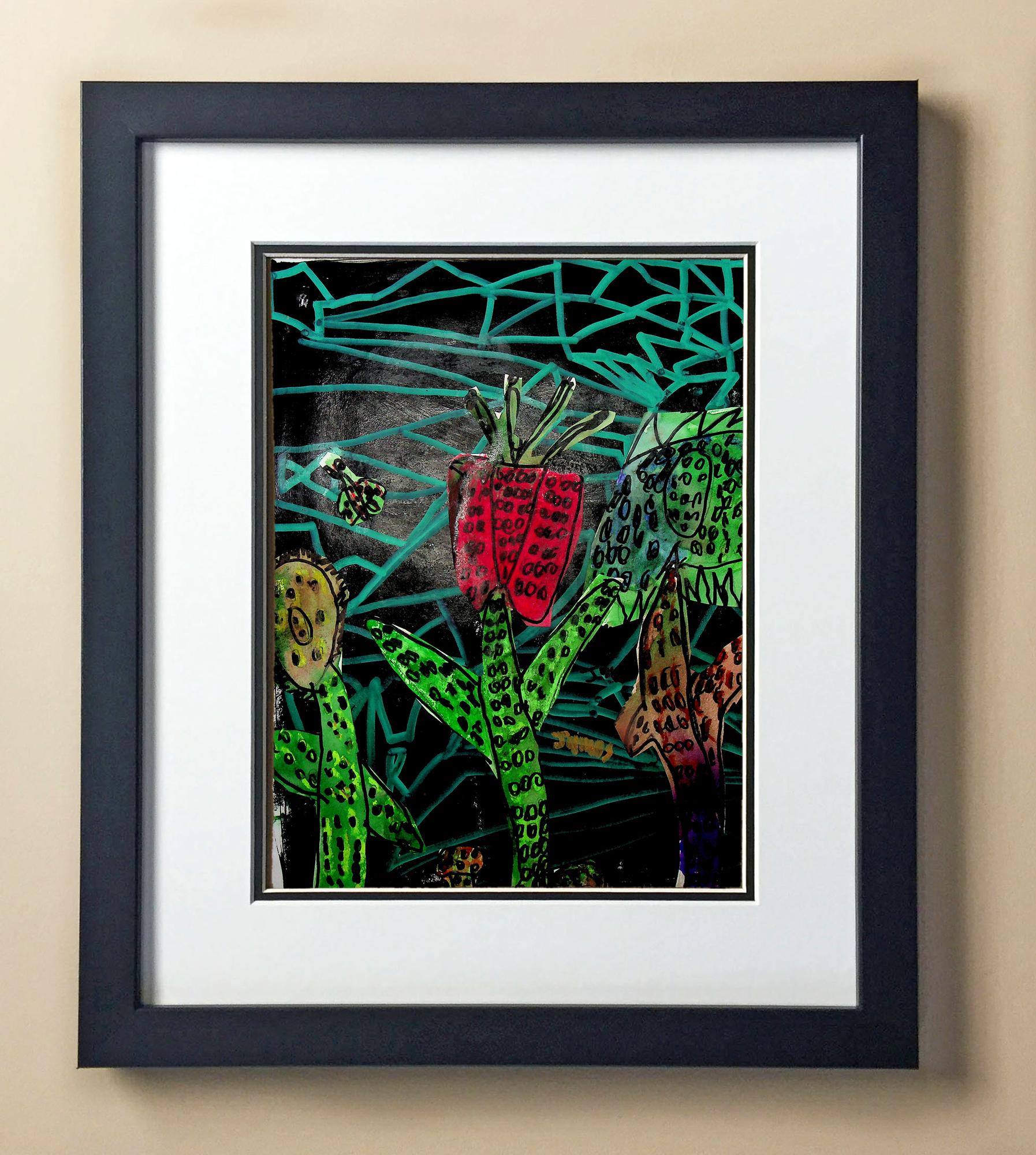 Included with the purchase is the Students Artwork, Frame, double matboard, shatter proof plexiglass, and a ready to hang backerboard with turnbuttons