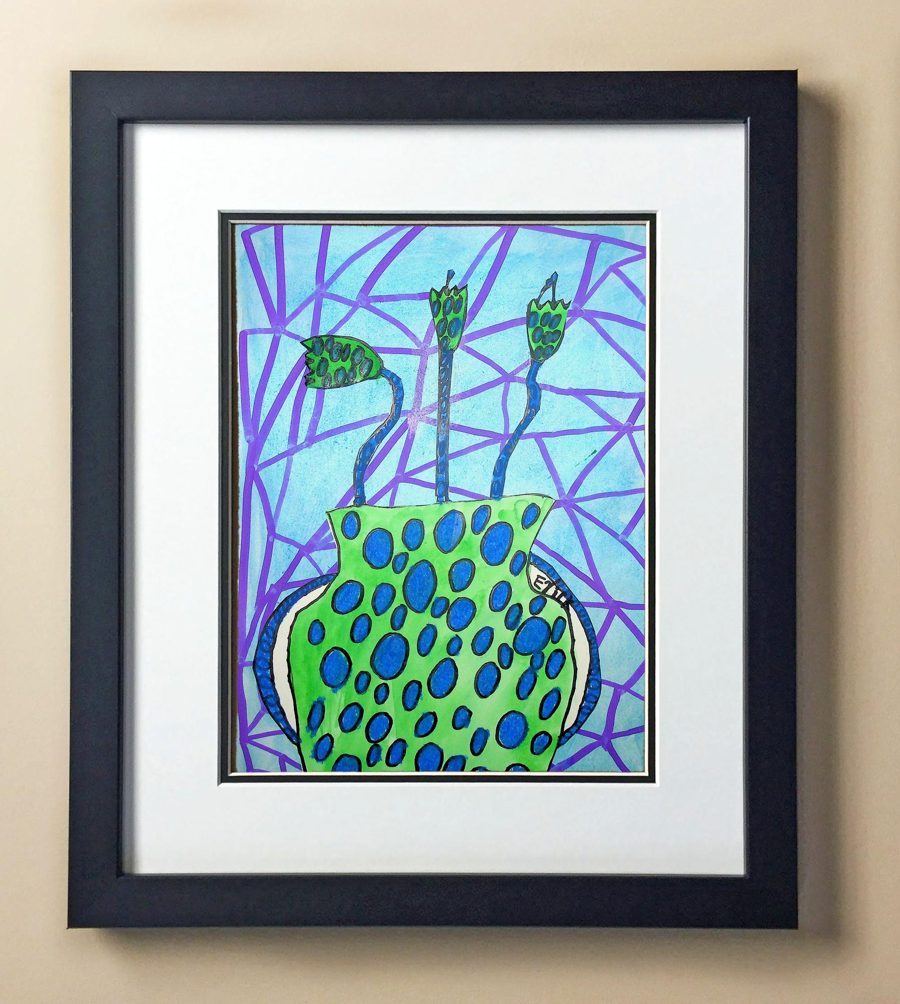 Included with the purchase is the Students Artwork, Frame, double matboard, shatter proof plexiglass, and a ready to hang backerboard with turnbuttons