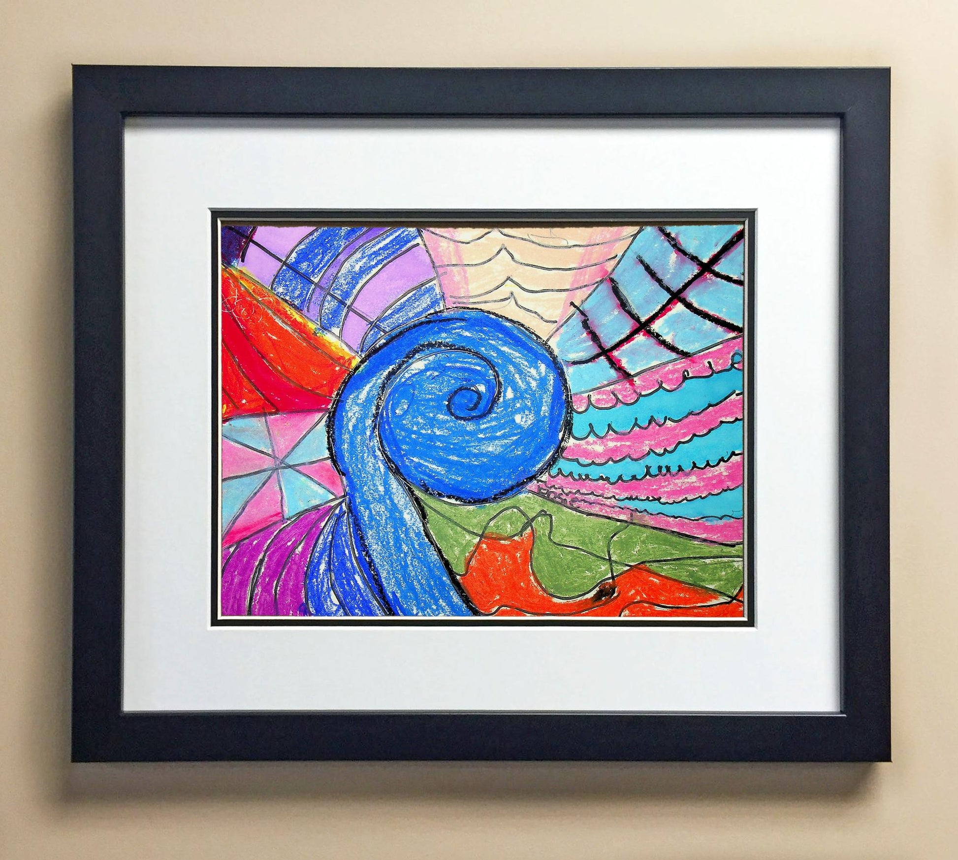Included with the purchase is the Students Artwork, Frame, double matboard, shatter proof plexiglass, and a ready to hang backerboard with turnbuttons