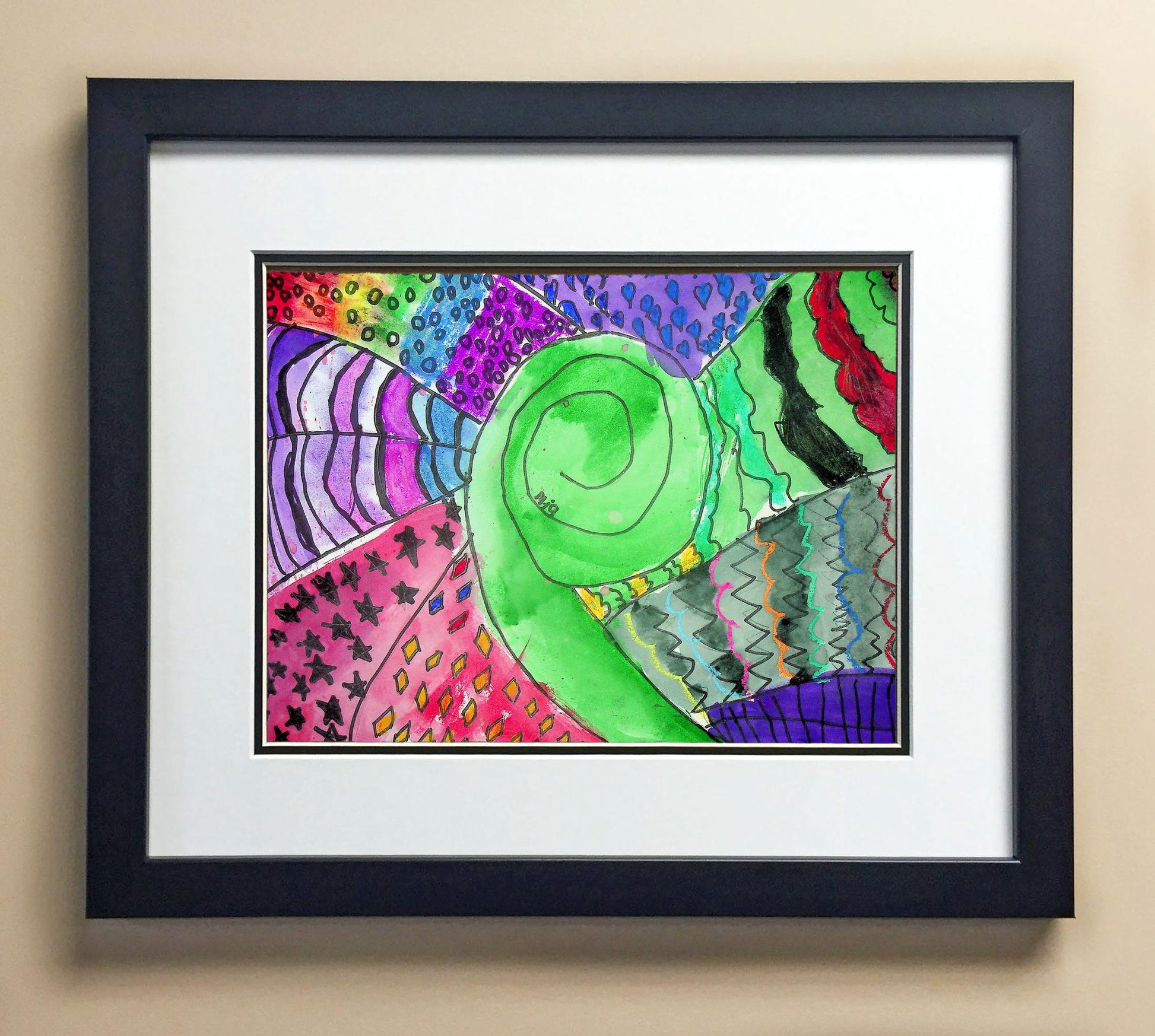 Included with the purchase is the Students Artwork, Frame, double matboard, shatter proof plexiglass, and a ready to hang backerboard with turnbuttons