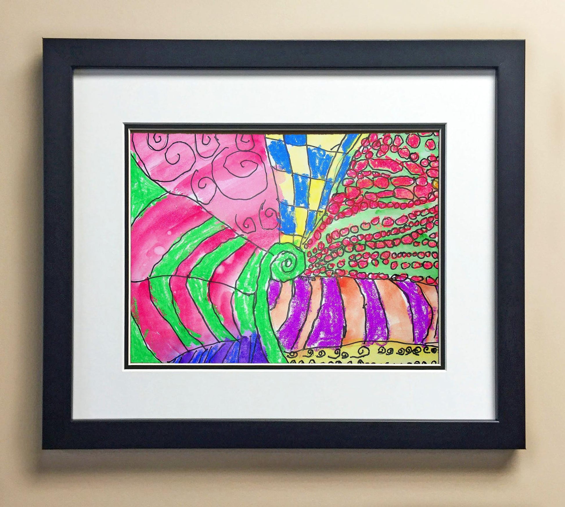 Included with the purchase is the Students Artwork, Frame, double matboard, shatter proof plexiglass, and a ready to hang backerboard with turnbuttons
