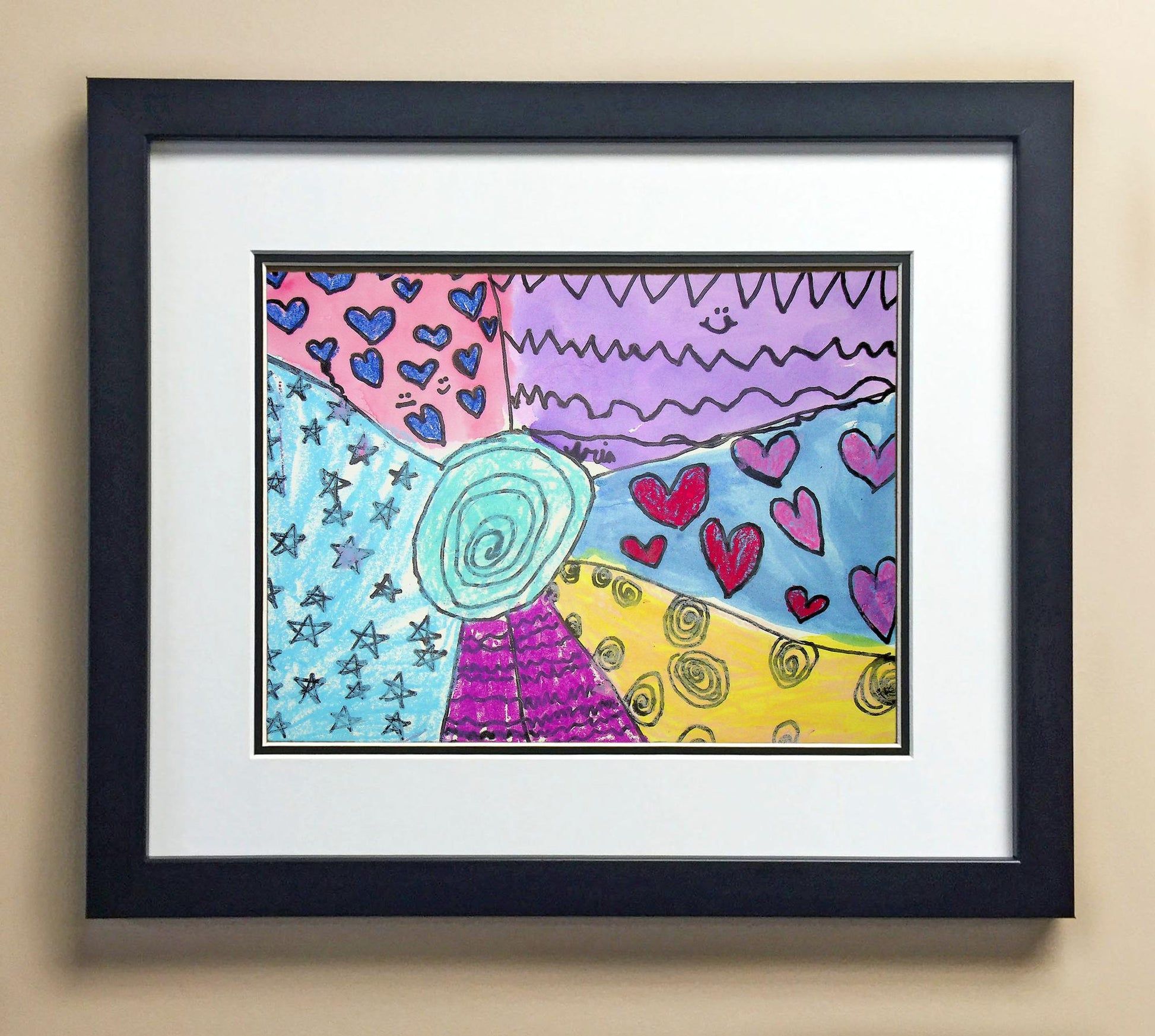 Included with the purchase is the Students Artwork, Frame, double matboard, shatter proof plexiglass, and a ready to hang backerboard with turnbuttons