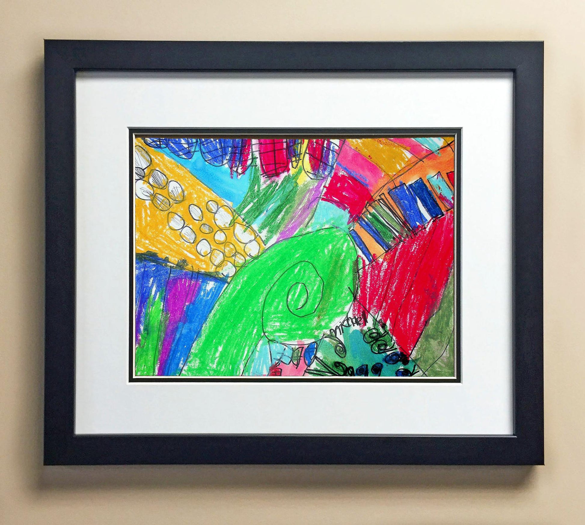 Included with the purchase is the Students Artwork, Frame, double matboard, shatter proof plexiglass, and a ready to hang backerboard with turnbuttons