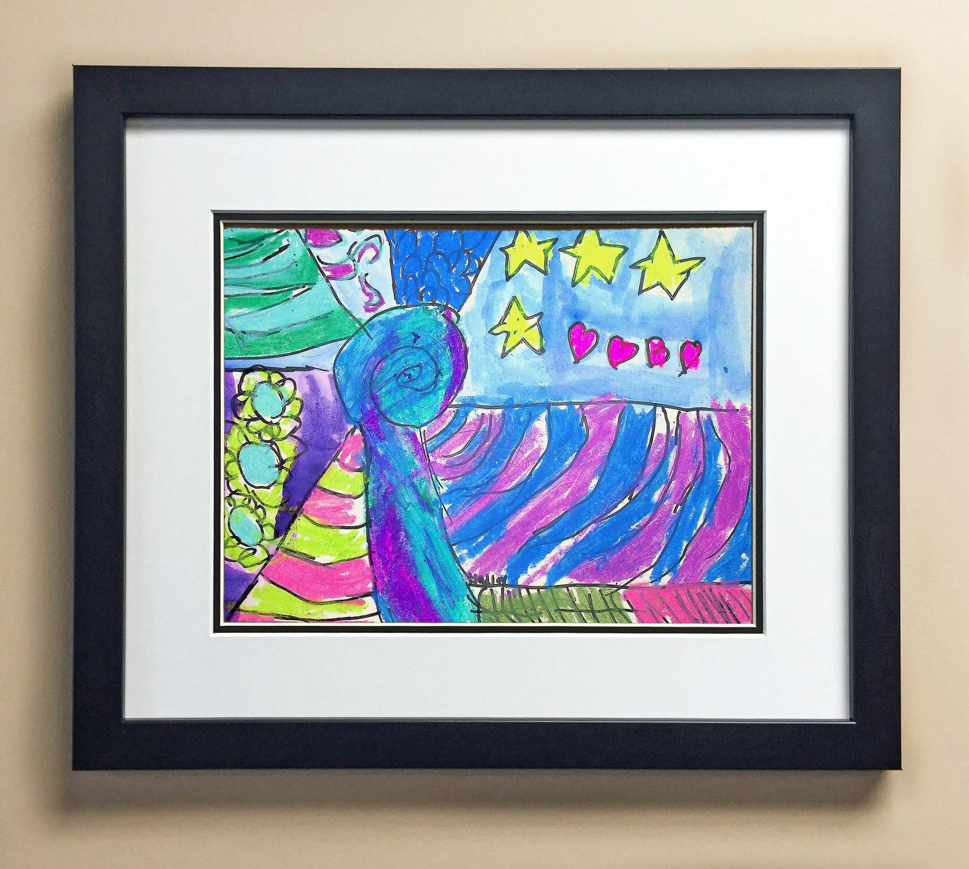 Included with the purchase is the Students Artwork, Frame, double matboard, shatter proof plexiglass, and a ready to hang backerboard with turnbuttons