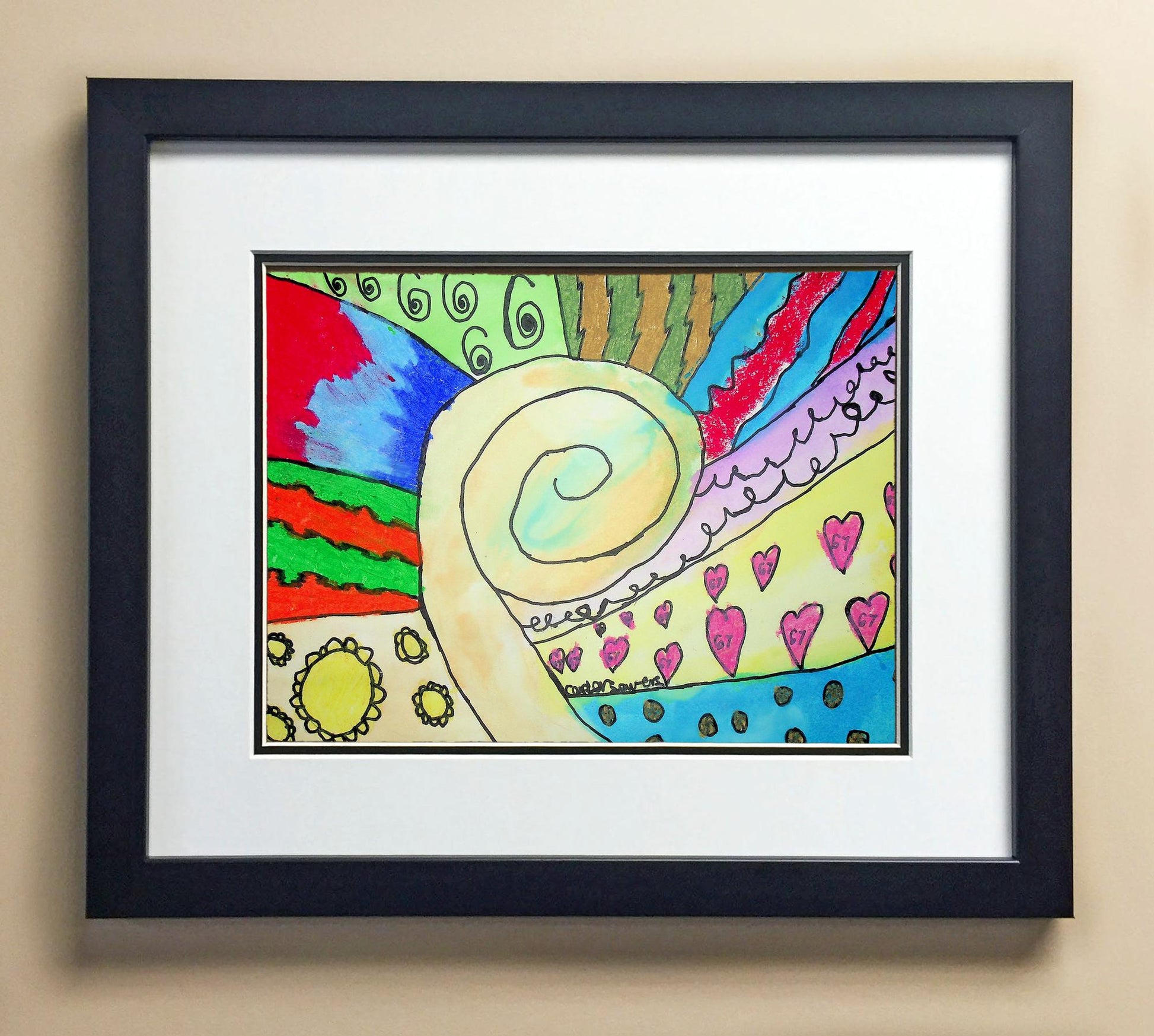Included with the purchase is the Students Artwork, Frame, double matboard, shatter proof plexiglass, and a ready to hang backerboard with turnbuttons
