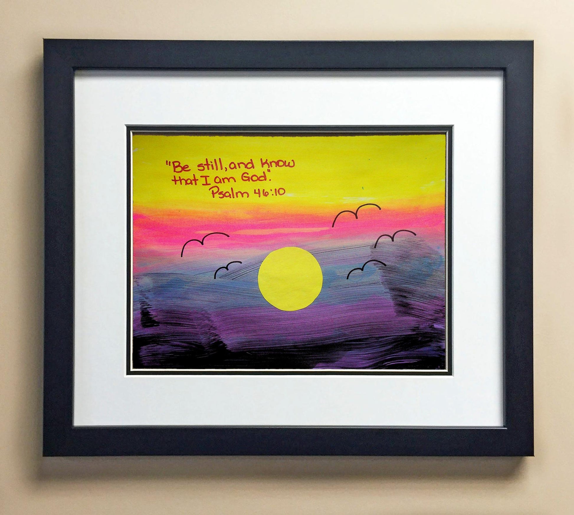 Included with the purchase is the Students Artwork, Frame, double matboard, shatter proof plexiglass, and a ready to hang backerboard with turnbuttons