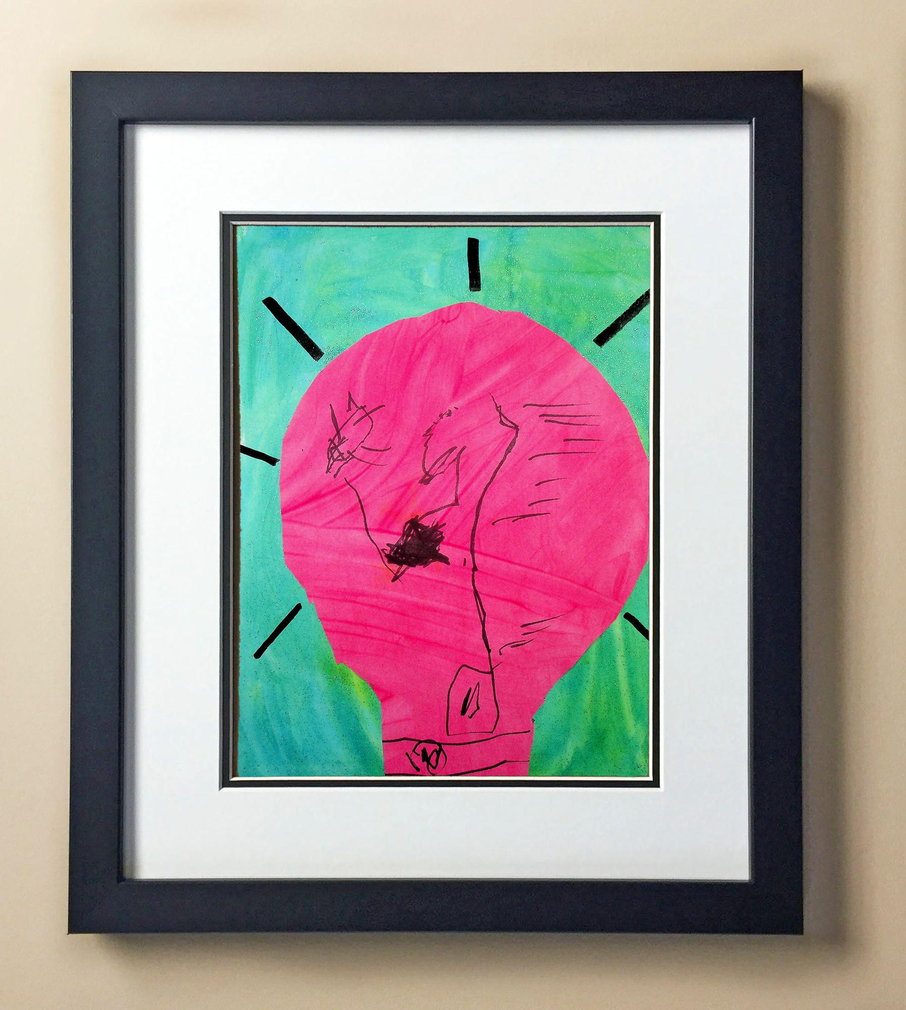 Included with the purchase is the Students Artwork, Frame, double matboard, shatter proof plexiglass, and a ready to hang backerboard with turnbuttons
