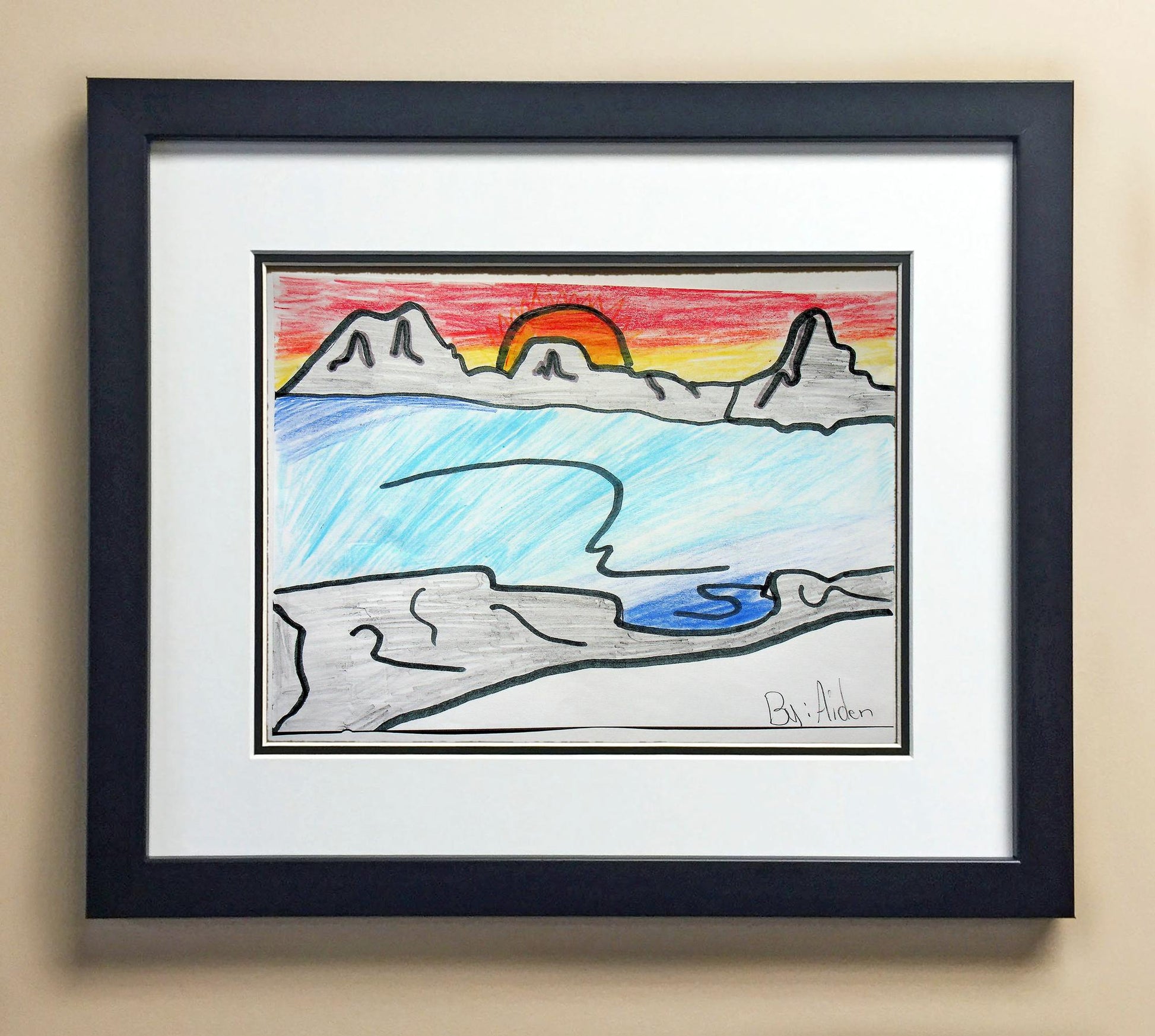 Included with the purchase is the Students Artwork, Frame, double matboard, shatter proof plexiglass, and a ready to hang backerboard with turnbuttons