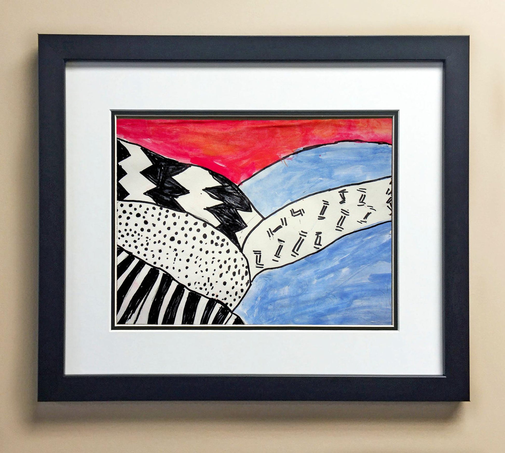 Included with the purchase is the Students Artwork, Frame, double matboard, shatter proof plexiglass, and a ready to hang backerboard with turnbuttons