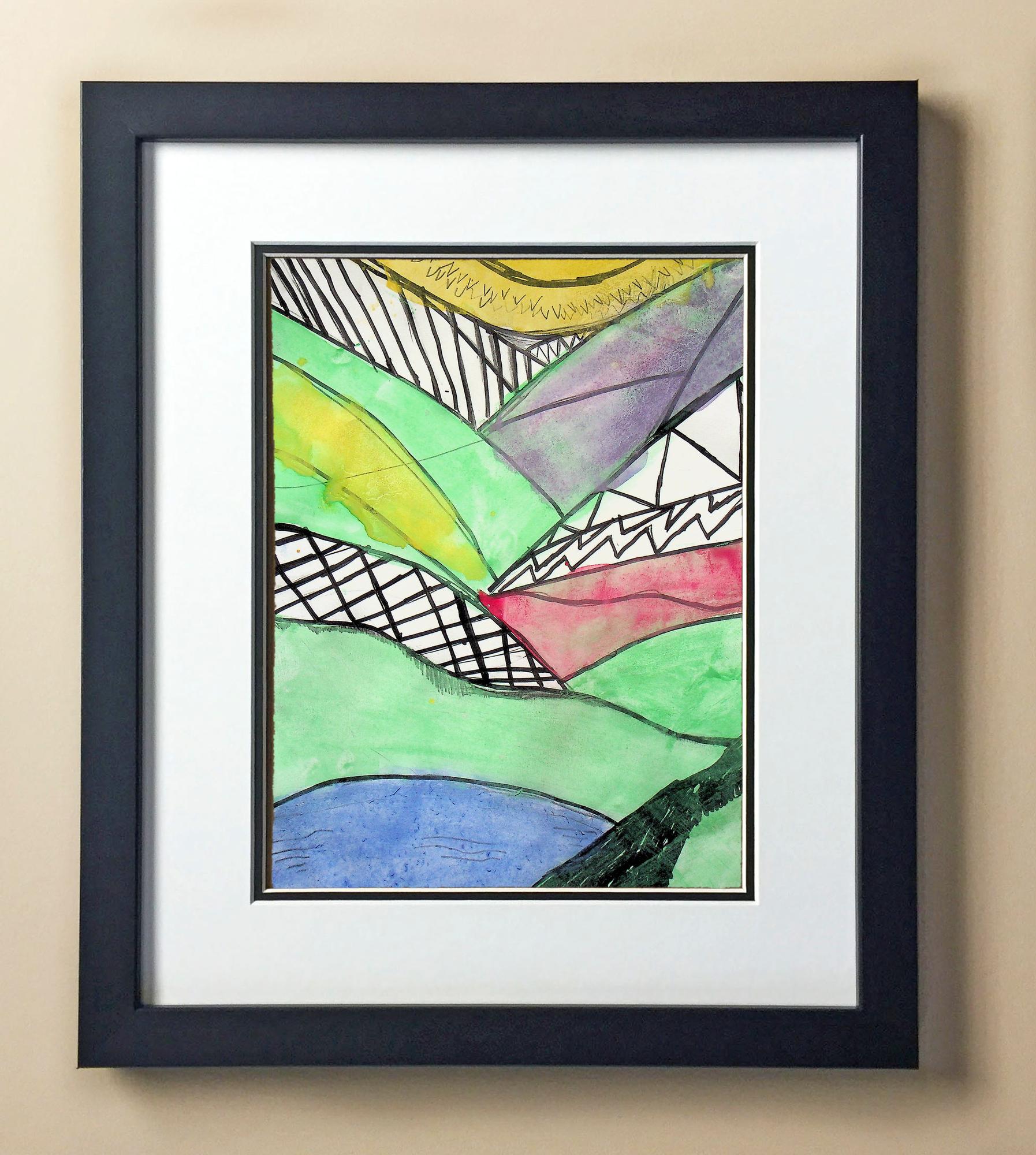 Included with the purchase is the Students Artwork, Frame, double matboard, shatter proof plexiglass, and a ready to hang backerboard with turnbuttons