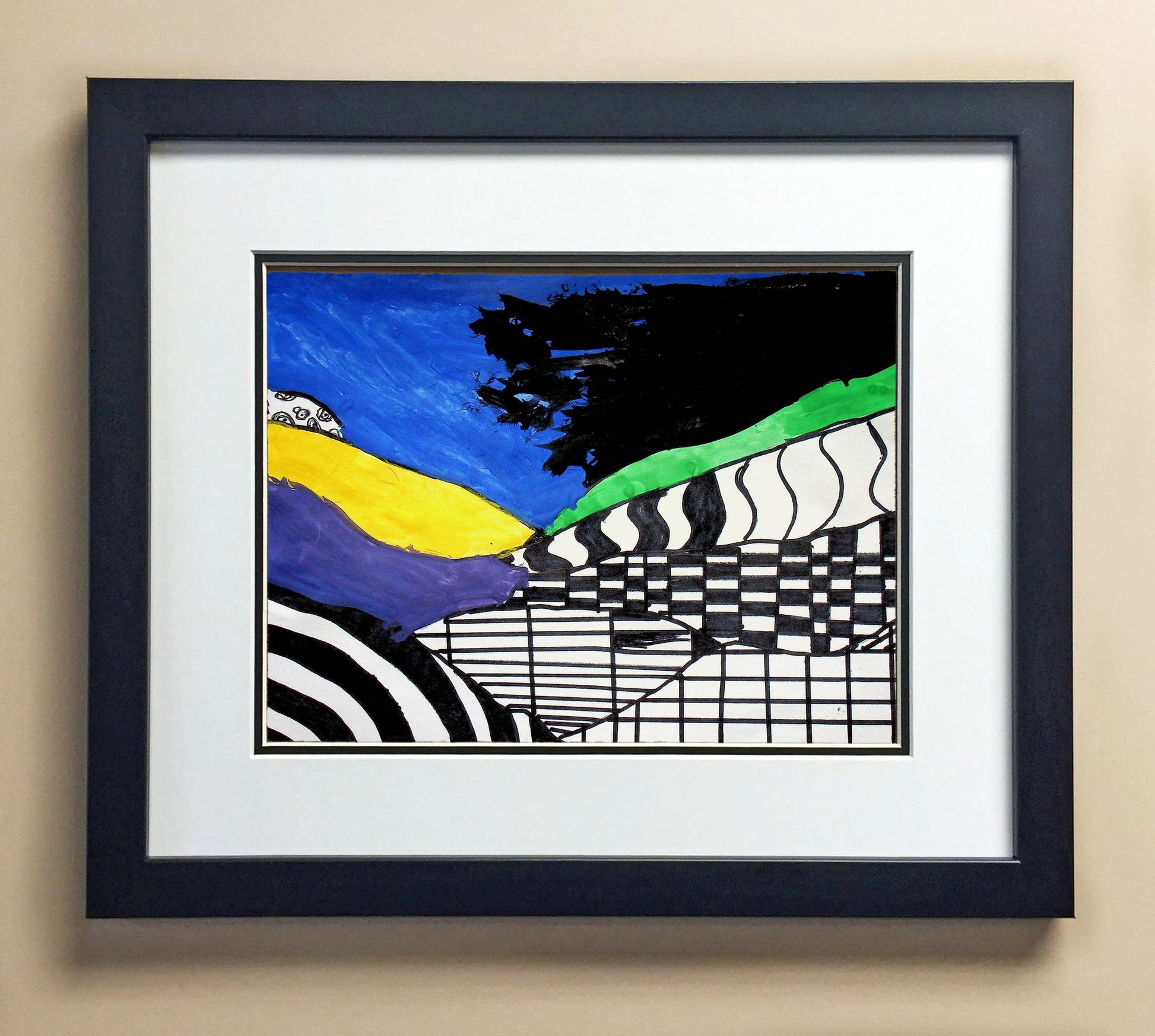 Included with the purchase is the Students Artwork, Frame, double matboard, shatter proof plexiglass, and a ready to hang backerboard with turnbuttons