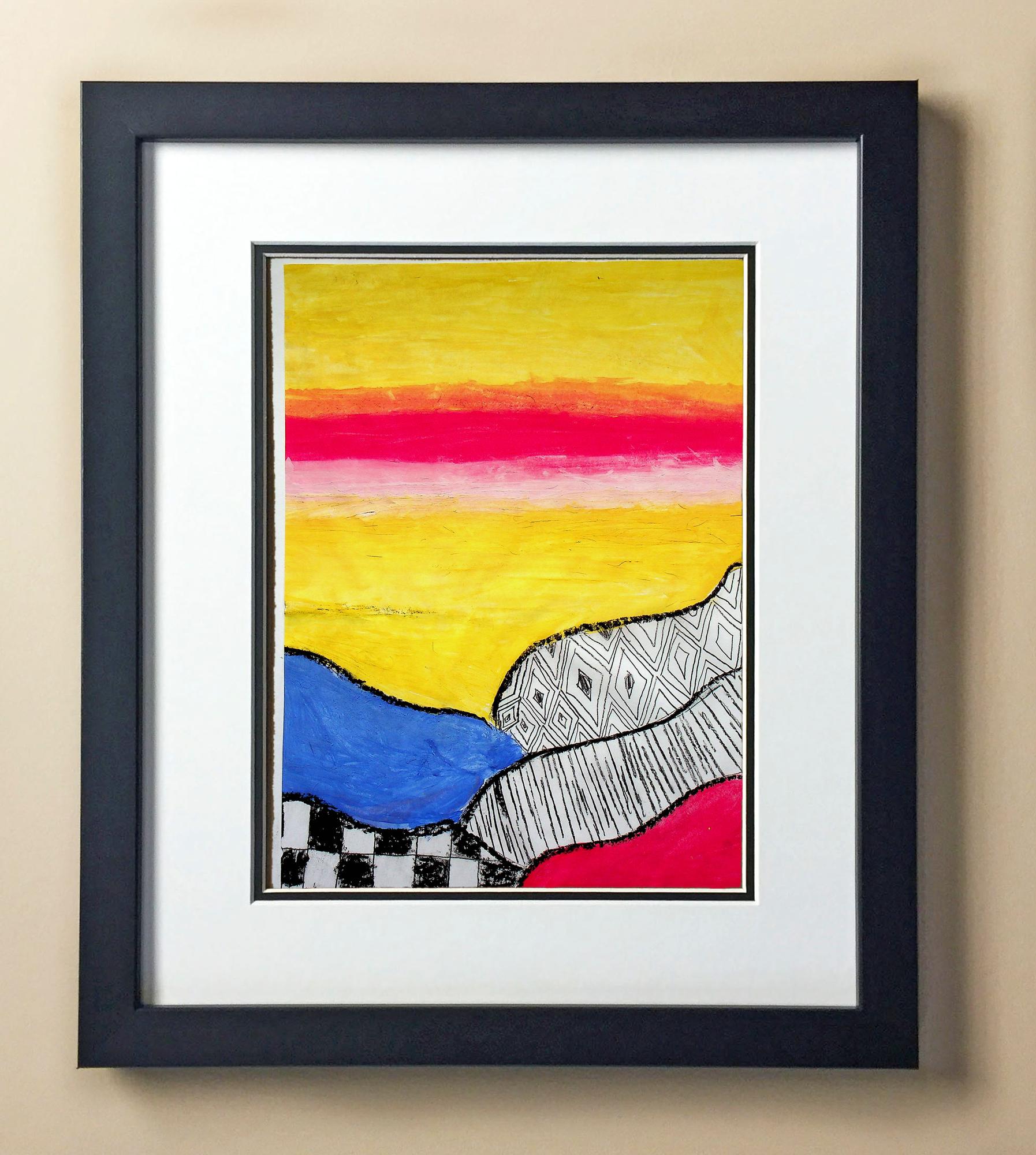 Included with the purchase is the Students Artwork, Frame, double matboard, shatter proof plexiglass, and a ready to hang backerboard with turnbuttons