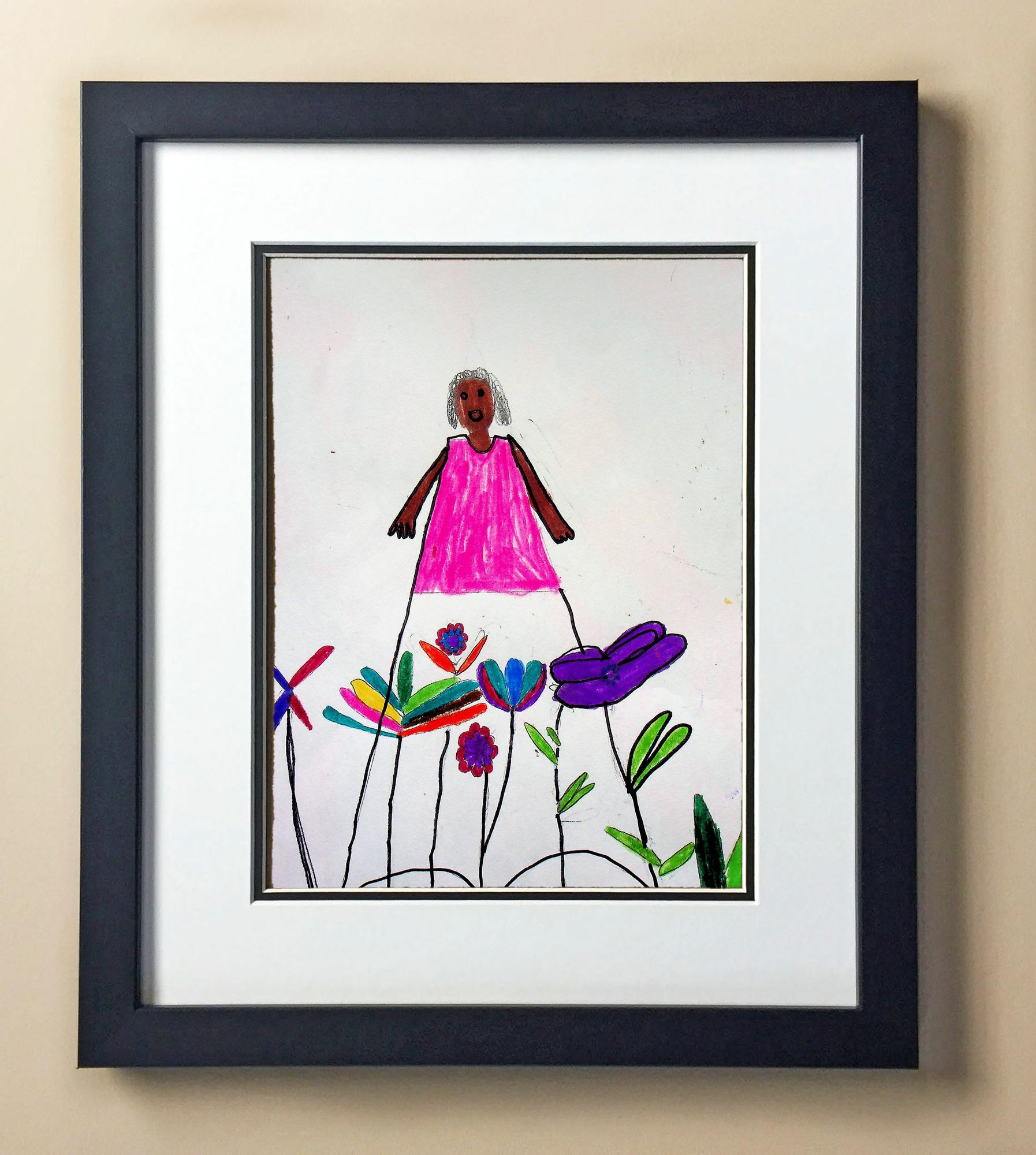 Included with the purchase is the Students Artwork, Frame, double matboard, shatter proof plexiglass, and a ready to hang backerboard with turnbuttons