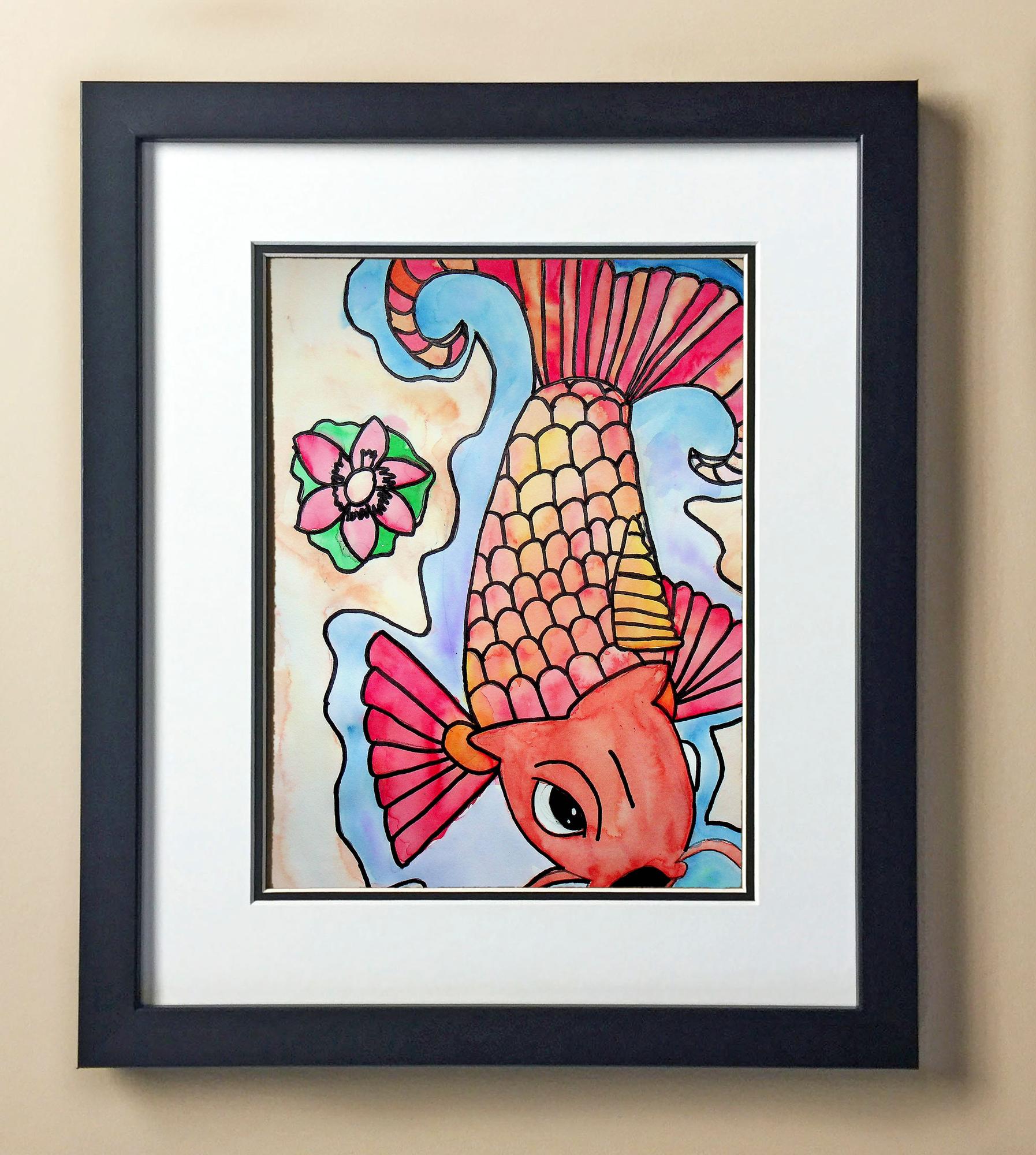 Included with the purchase is the Students Artwork, Frame, double matboard, shatter proof plexiglass, and a ready to hang backerboard with turnbuttons