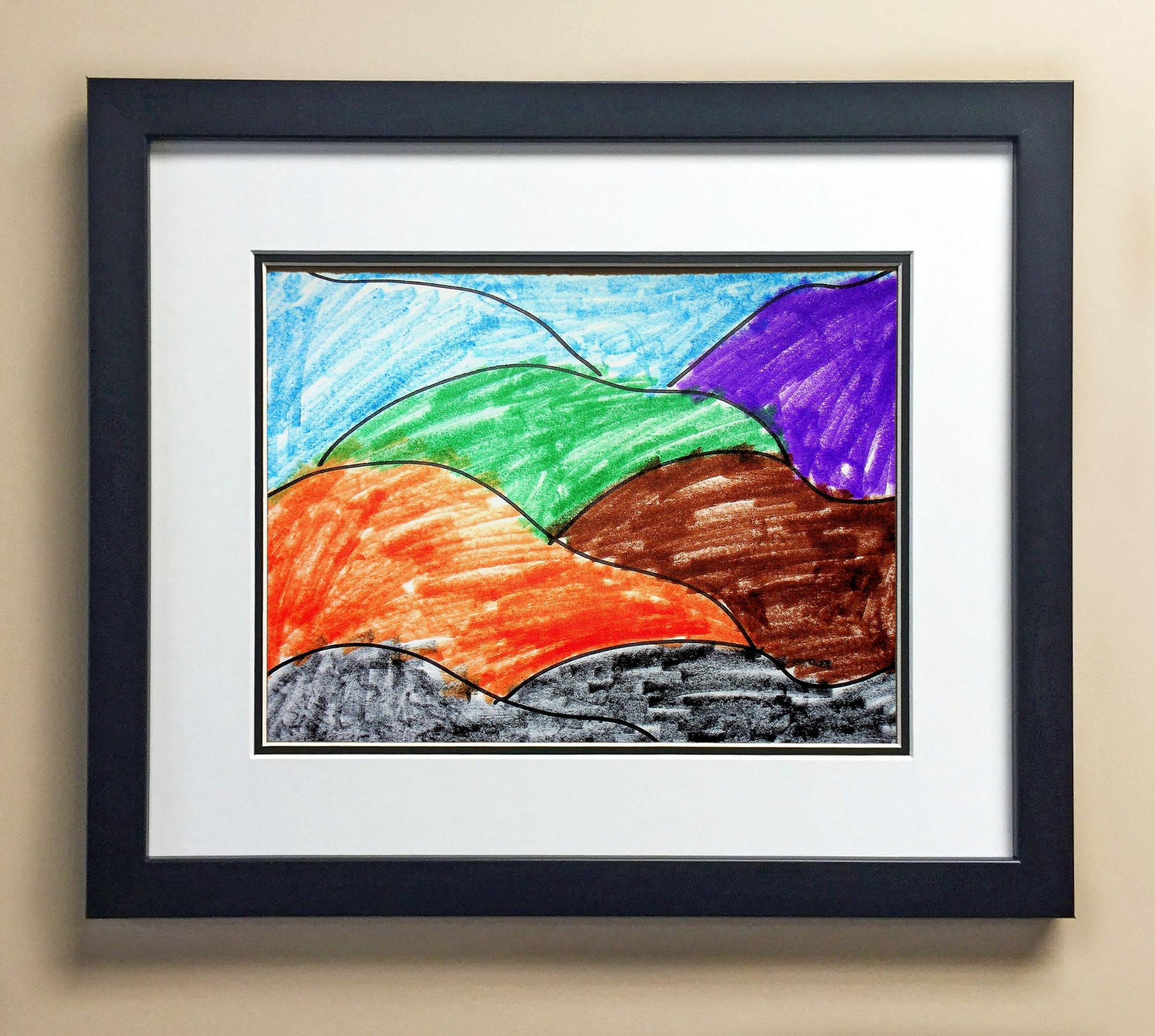 Included with the purchase is the Students Artwork, Frame, double matboard, shatter proof plexiglass, and a ready to hang backerboard with turnbuttons