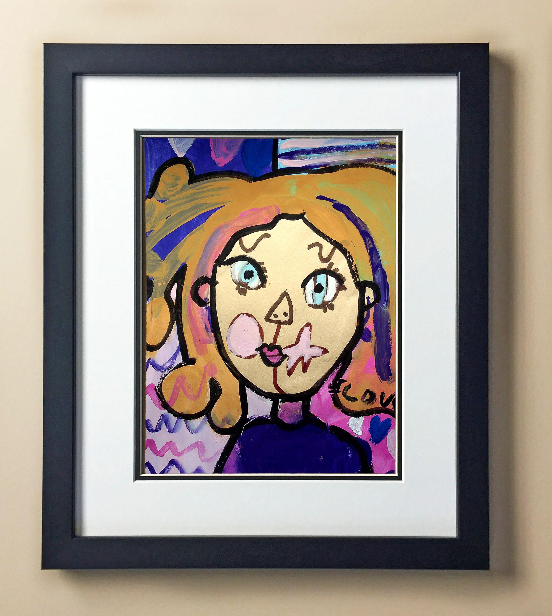 Included with the purchase is the Students Artwork, Frame, double matboard, shatter proof plexiglass, and a ready to hang backerboard with turnbuttons