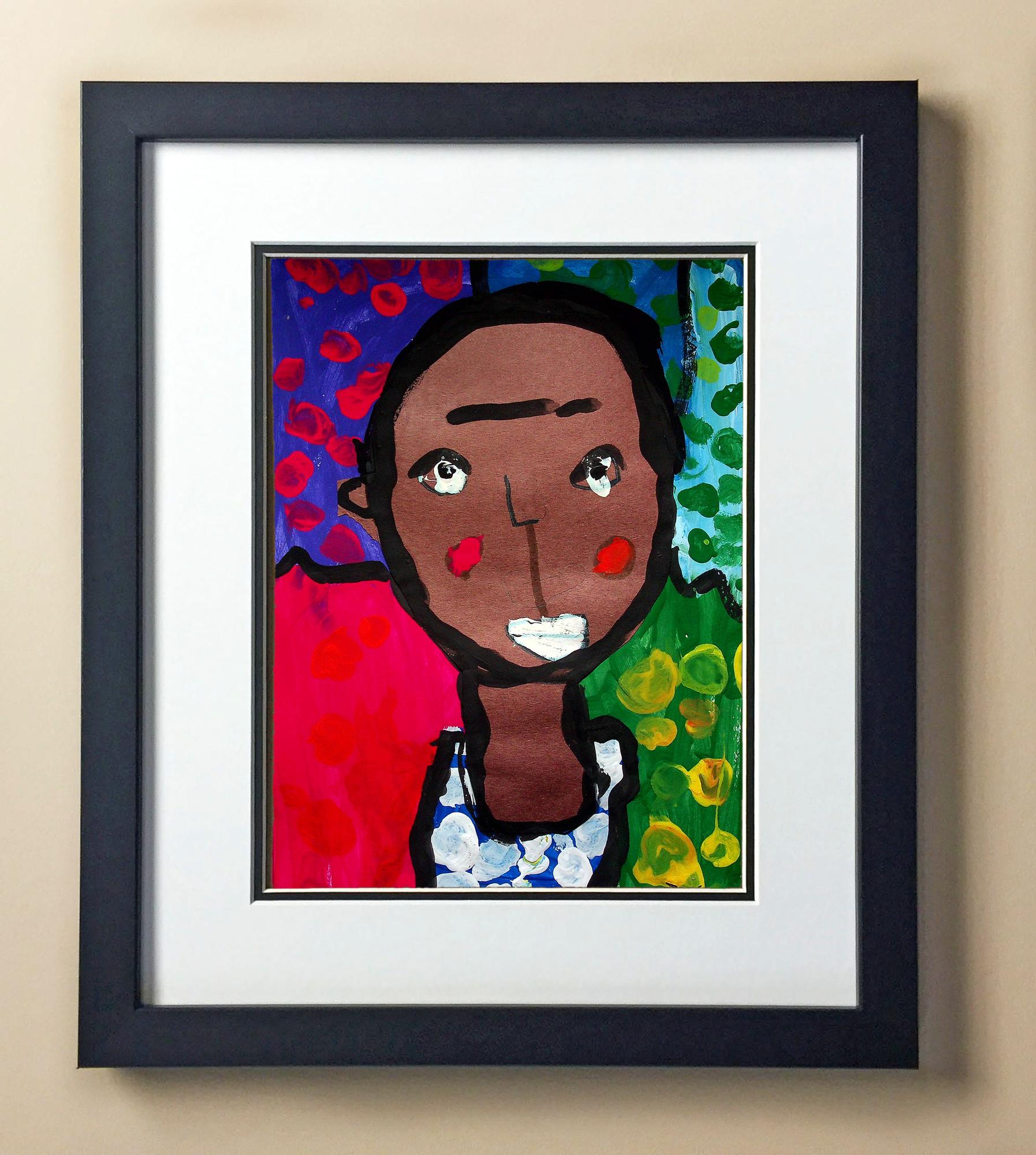 Included with the purchase is the Students Artwork, Frame, double matboard, shatter proof plexiglass, and a ready to hang backerboard with turnbuttons