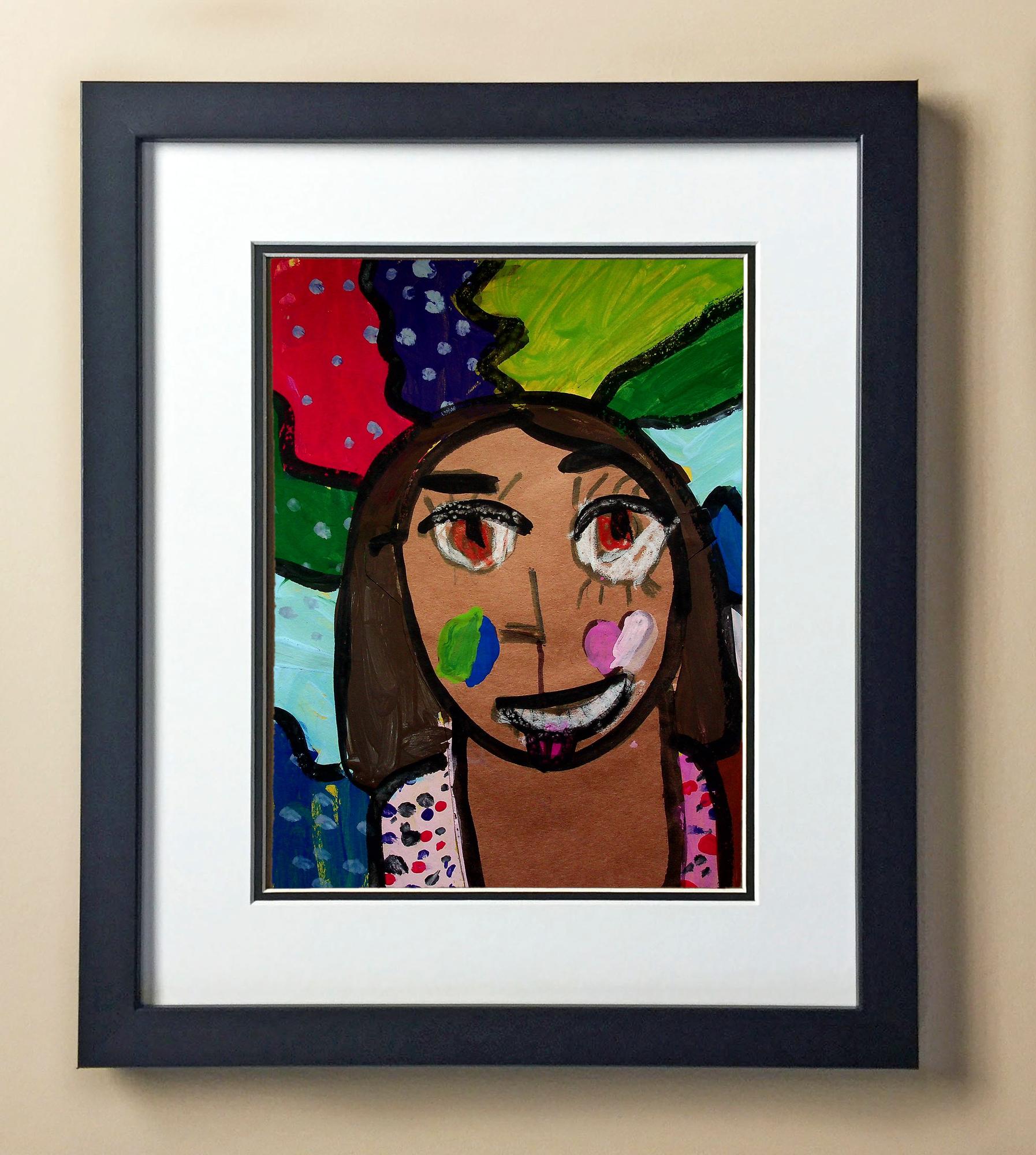 Included with the purchase is the Students Artwork, Frame, double matboard, shatter proof plexiglass, and a ready to hang backerboard with turnbuttons