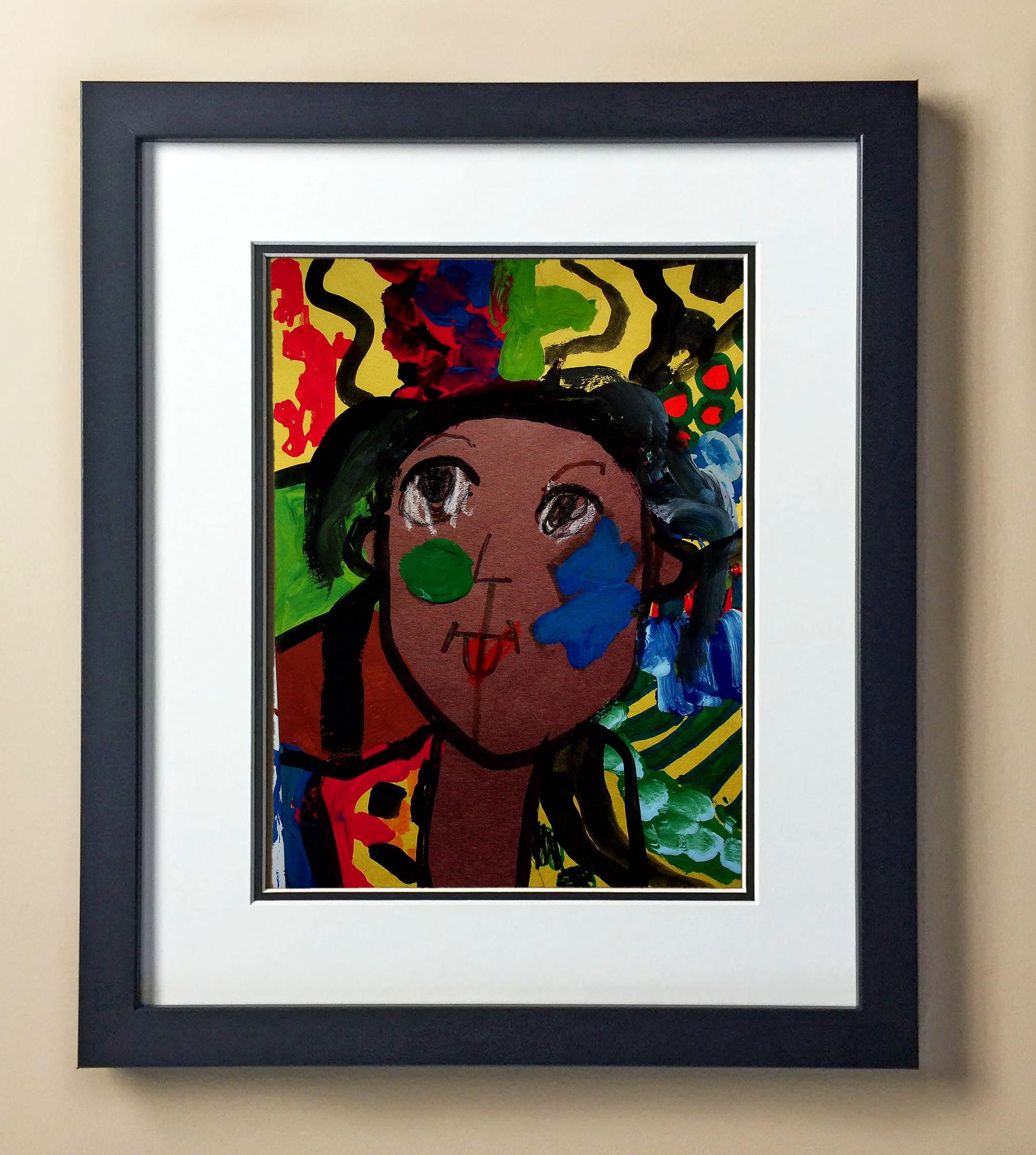 Included with the purchase is the Students Artwork, Frame, double matboard, shatter proof plexiglass, and a ready to hang backerboard with turnbuttons