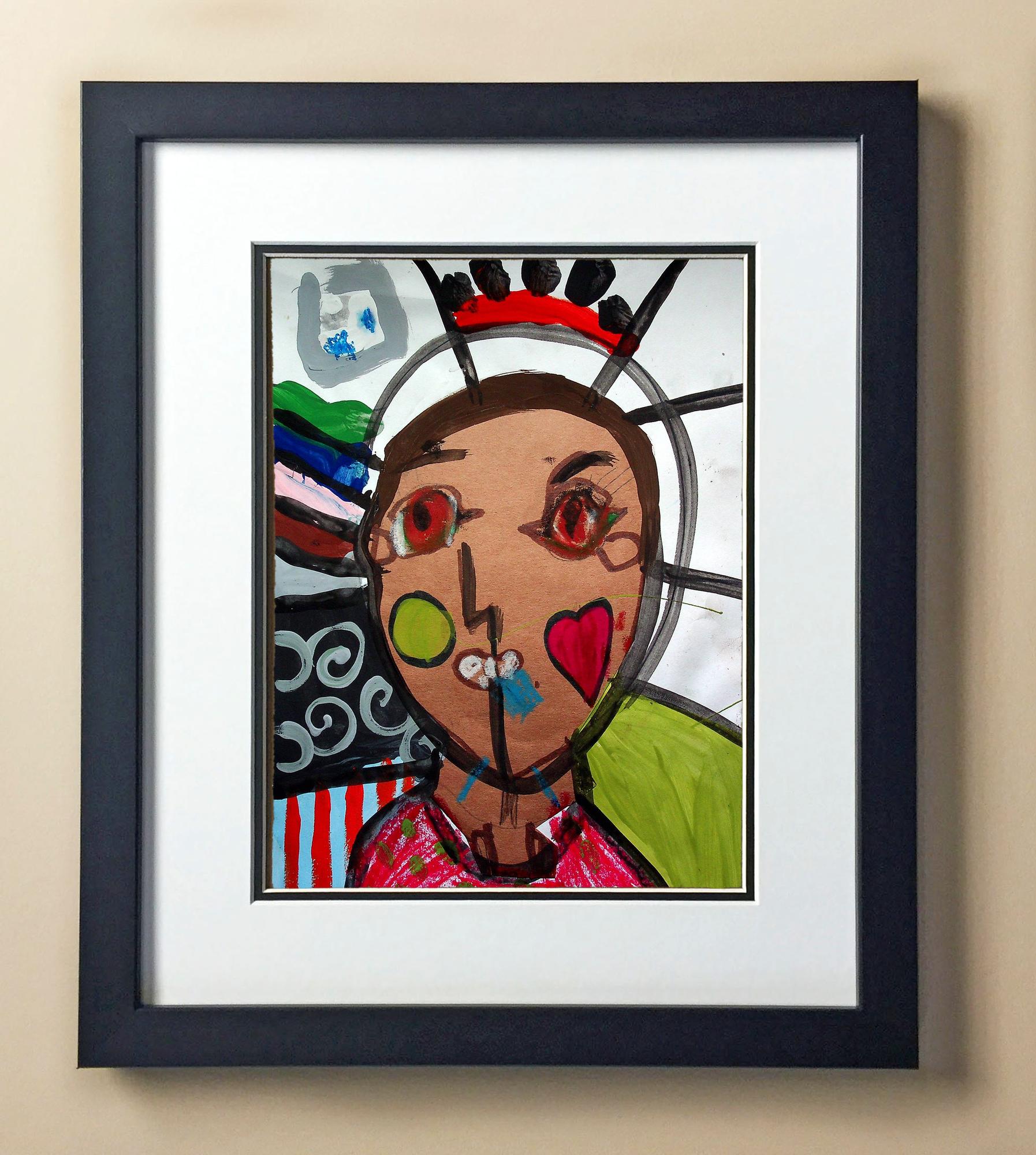 Included with the purchase is the Students Artwork, Frame, double matboard, shatter proof plexiglass, and a ready to hang backerboard with turnbuttons