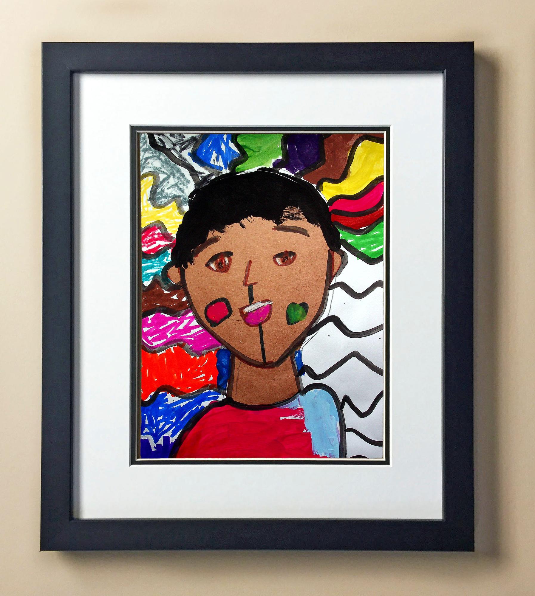 Included with the purchase is the Students Artwork, Frame, double matboard, shatter proof plexiglass, and a ready to hang backerboard with turnbuttons