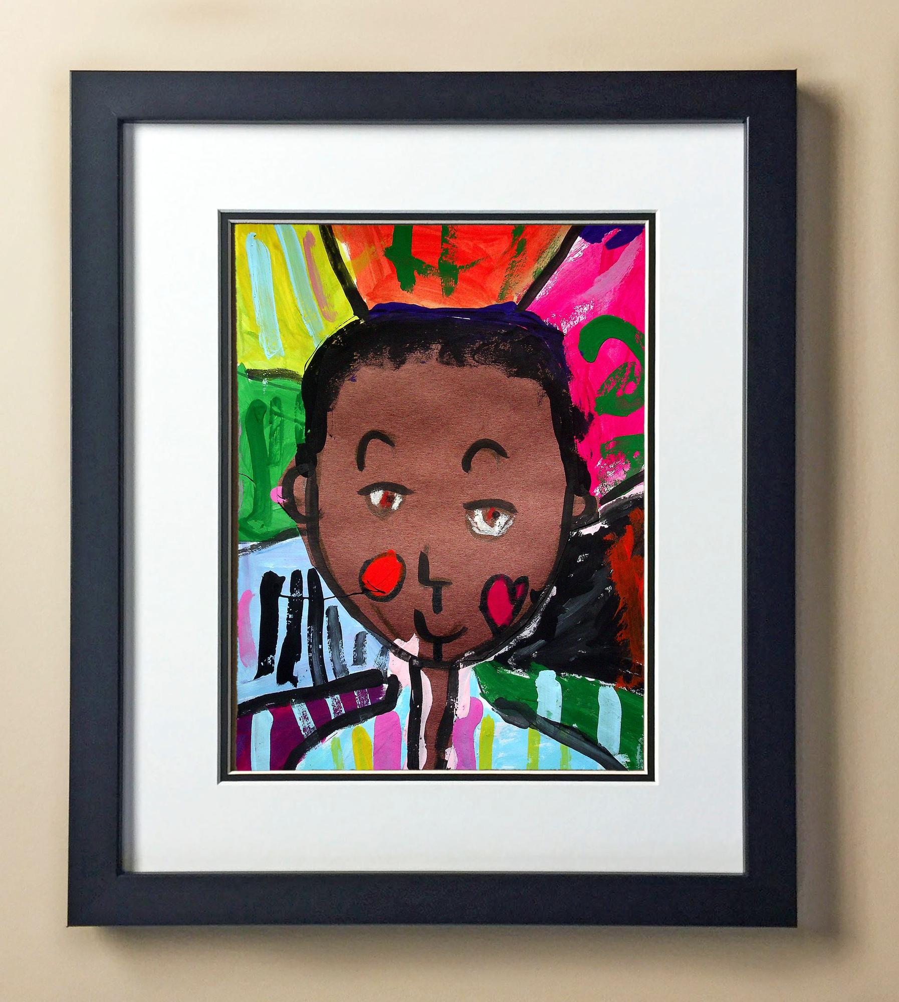 Included with the purchase is the Students Artwork, Frame, double matboard, shatter proof plexiglass, and a ready to hang backerboard with turnbuttons